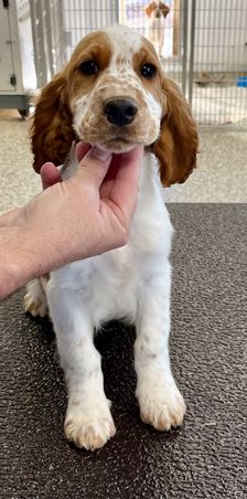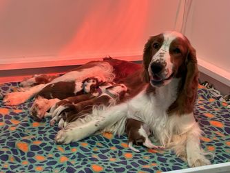 Cwen is a female Welsh Springer Spaniel. Carefully selected as a great representative of her breed, Doug decided to make her part of their program. Doug has passed Good Dog’s screening process, which involved a review of their breeding practices, environment, and the mental and physical health of their dogs.