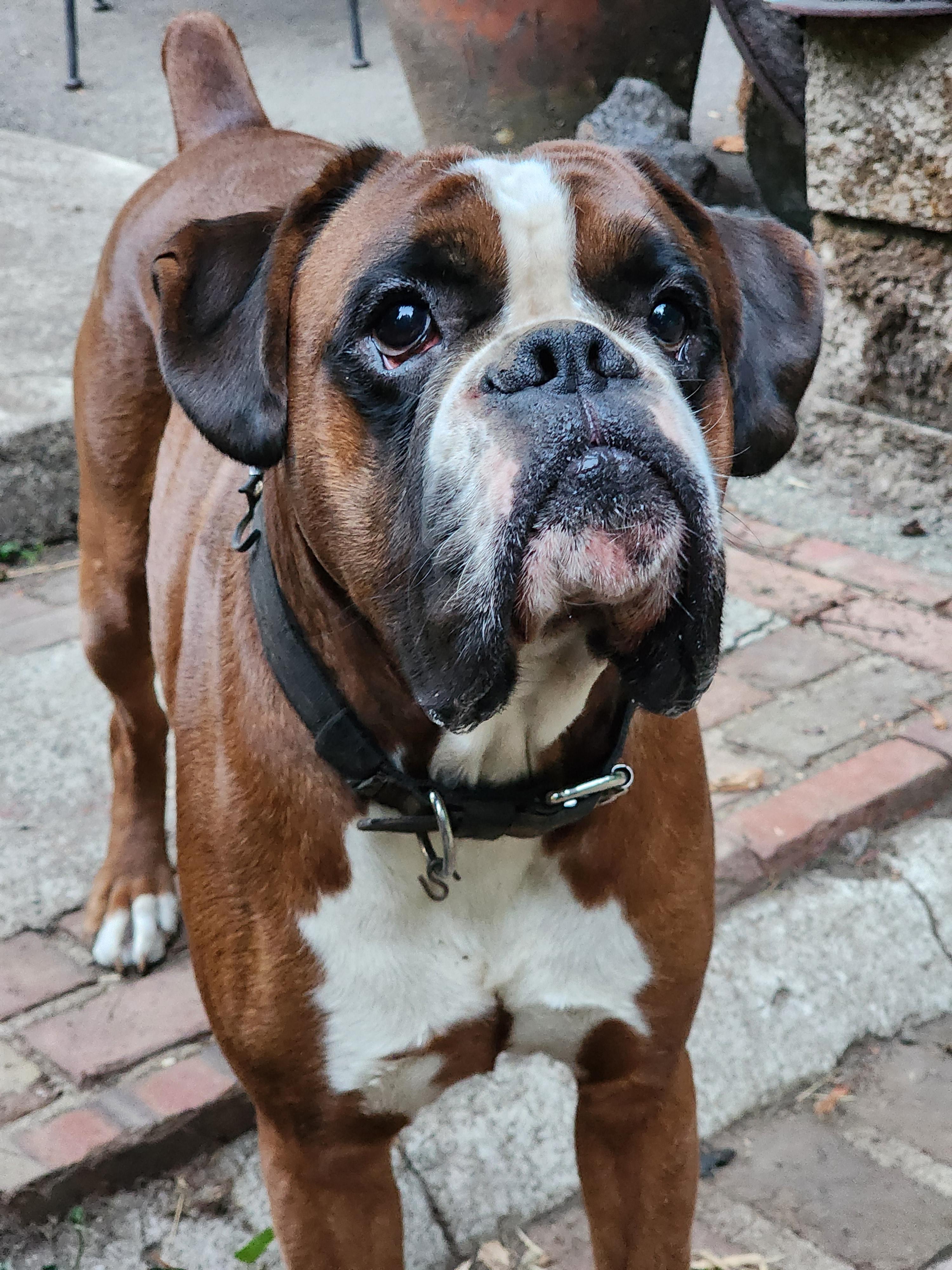 I use to breed Shepard and Doberman but after they past at 14 I got my first boxer SHELBY AND HER SISTER PIG they started clydesflashyboxers over the years I've learned and improved my breeding standards and test all my dogs before I put them in my breeding program. Once retired I just spoil them more