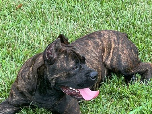 Stormy is a female Cane Corso. Carefully selected as a great representative of her breed, Danyalle decided to make her part of their program. Danyalle has passed Good Dog’s screening process, which involved a review of their breeding practices, environment, and the mental and physical health of their dogs.