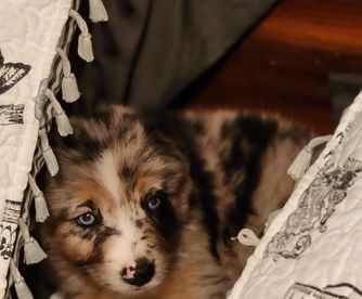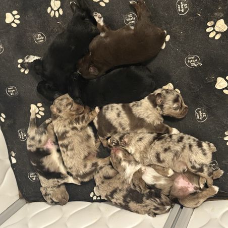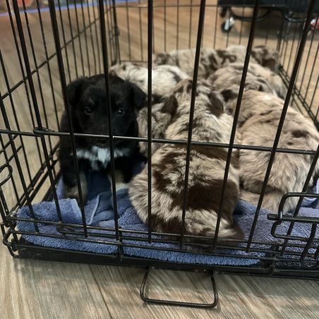 Our puppies include red merle, blue merle, black tri-color, and red tri-color. Colors will vary depending on the parent dogs.
