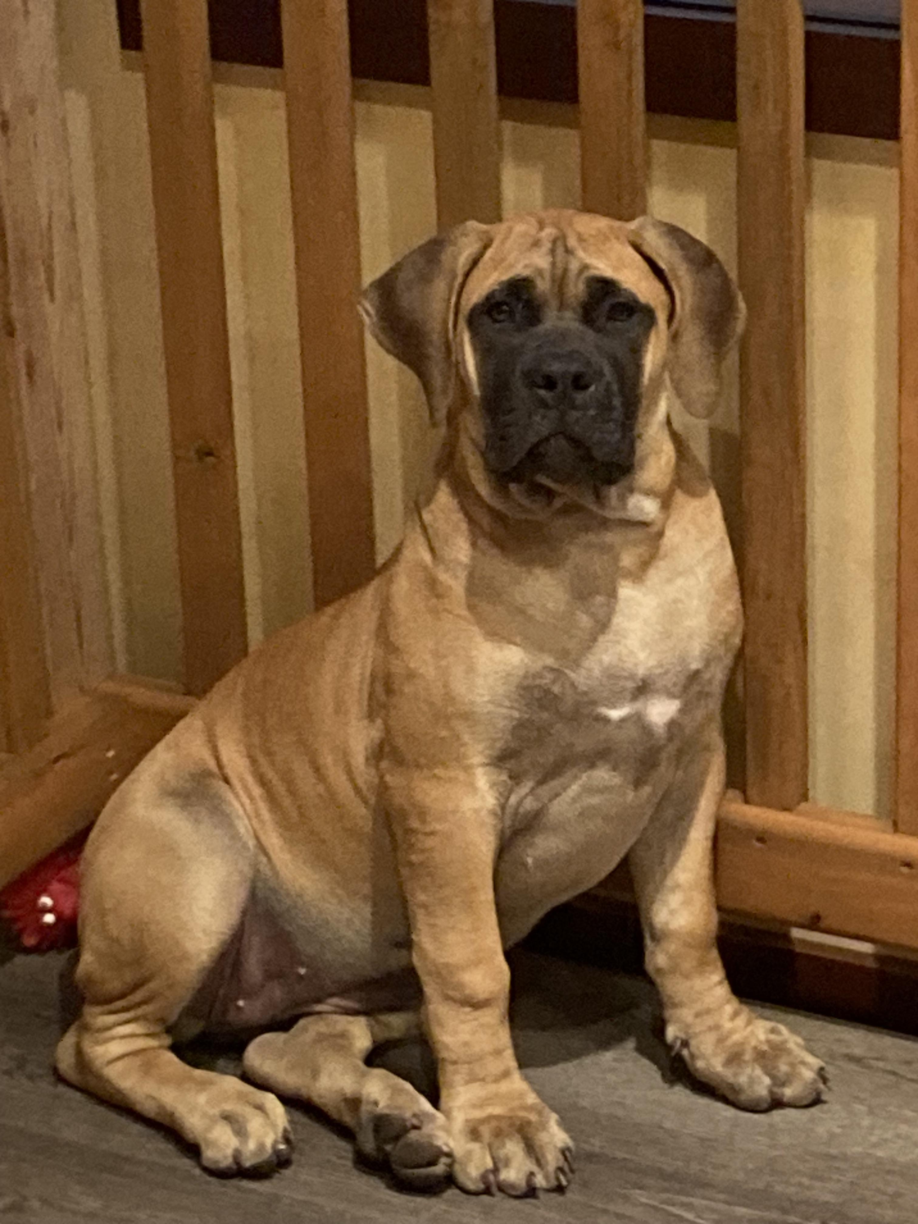 Motts is a female Boerboel. Carefully selected as a great representative of her breed, Tara decided to make her part of their program. Tara has passed Good Dog’s screening process, which involved a review of their breeding practices, environment, and the mental and physical health of their dogs.