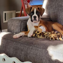Working with Coast to Coast Boxers was a very pleasant experience. They were very prompt with communications, before and after adoption, and we are very much in love with our little Bruiser we adopted. He is very intelligent and is taking to training very intuitively. I would refer them to anyone looking for a Boxer puppy.