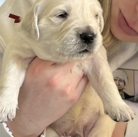 Oakley is a cream colored Golden Retriever, 100%. She resides in Richmond, Va. All OFA testing and DNA completed. Happy to show results when requested. Oakley has the sweetest dispositions and very loving.