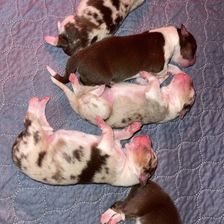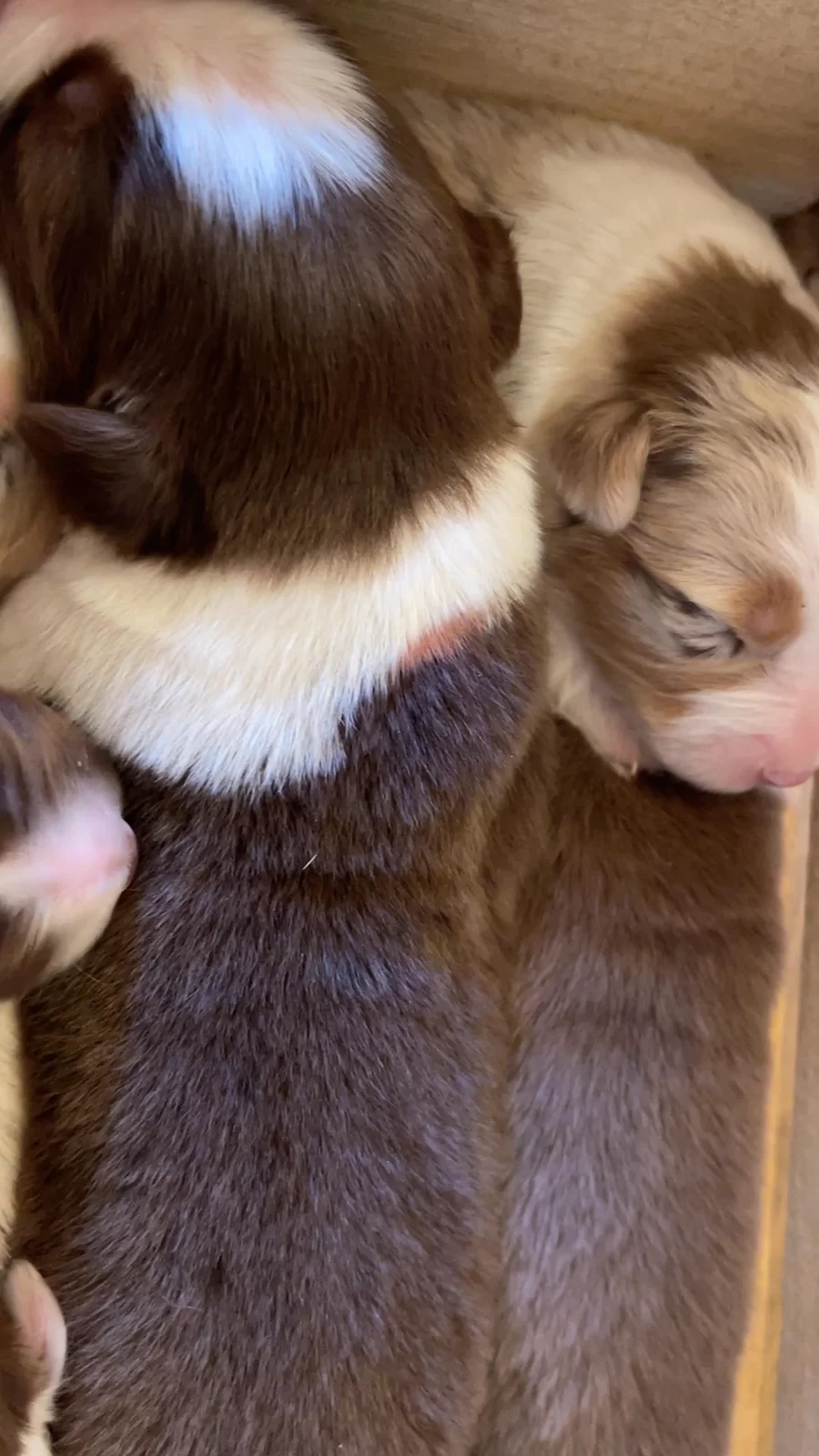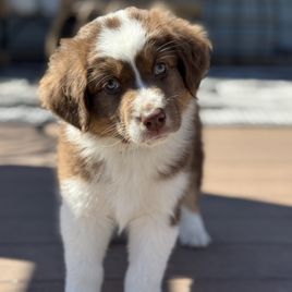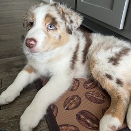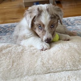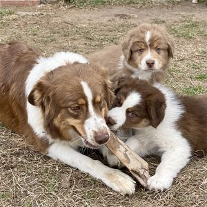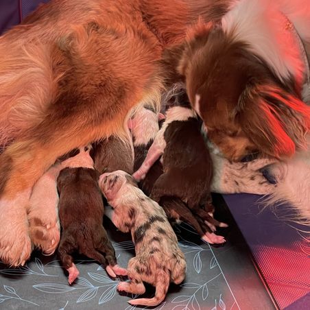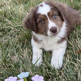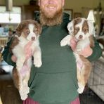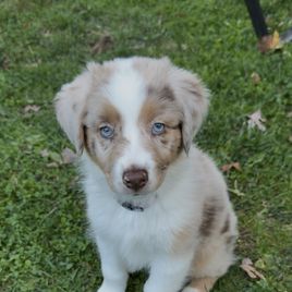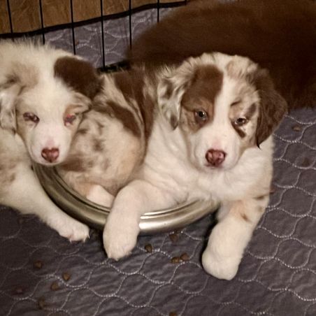 Our puppies include red merle and red tri-color. Colors will vary depending on the parent dogs.