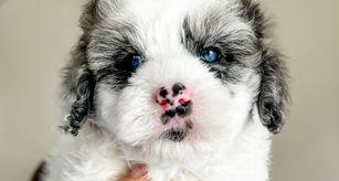 Our puppies include merle and black and white. Colors will vary depending on the parent dogs.