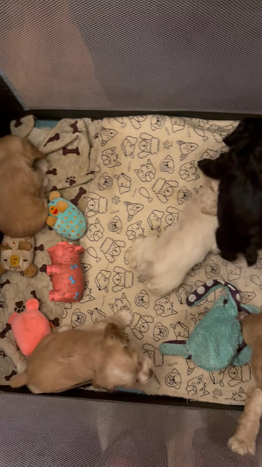 Here’s a video of the puppies at 6 weeks old. They’re all playing together. So precious!