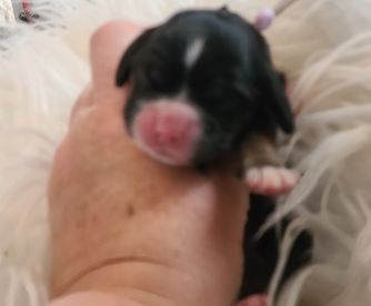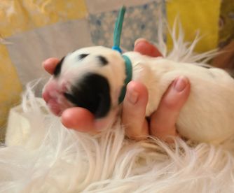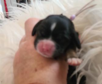 Our puppies include black and tan, buff and white, buff, black white and tan, black and white, and black. Colors will vary depending on the parent dogs.
