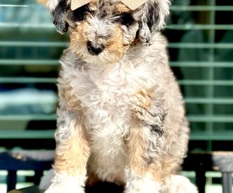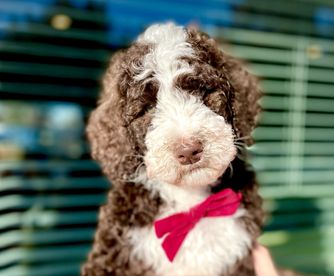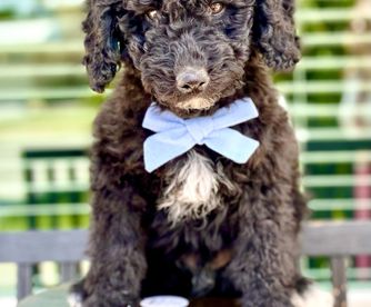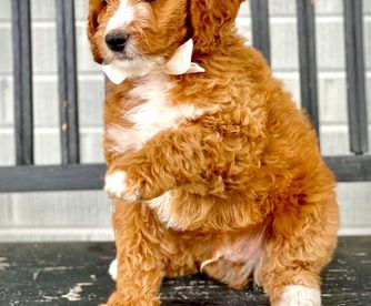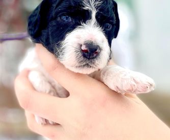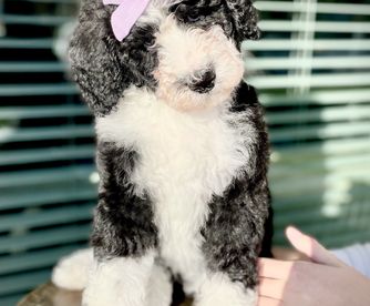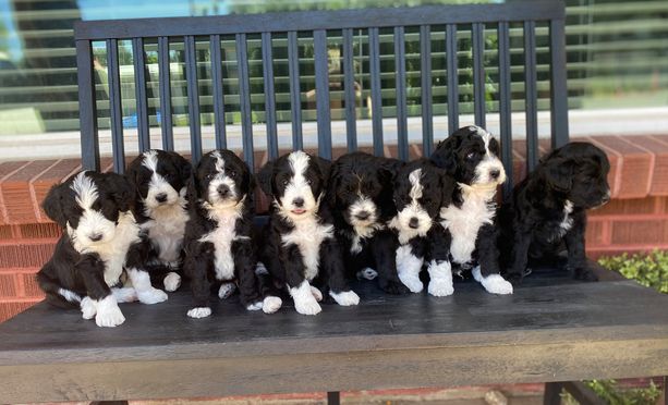 Our Bernedoodle puppies include black, black and white, tri-color, and phantom. Poodle puppies include brown, red, parti, and phantom. Colors will vary depending on the parent dogs.