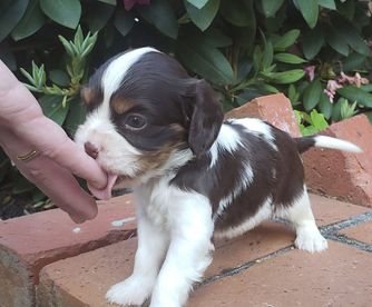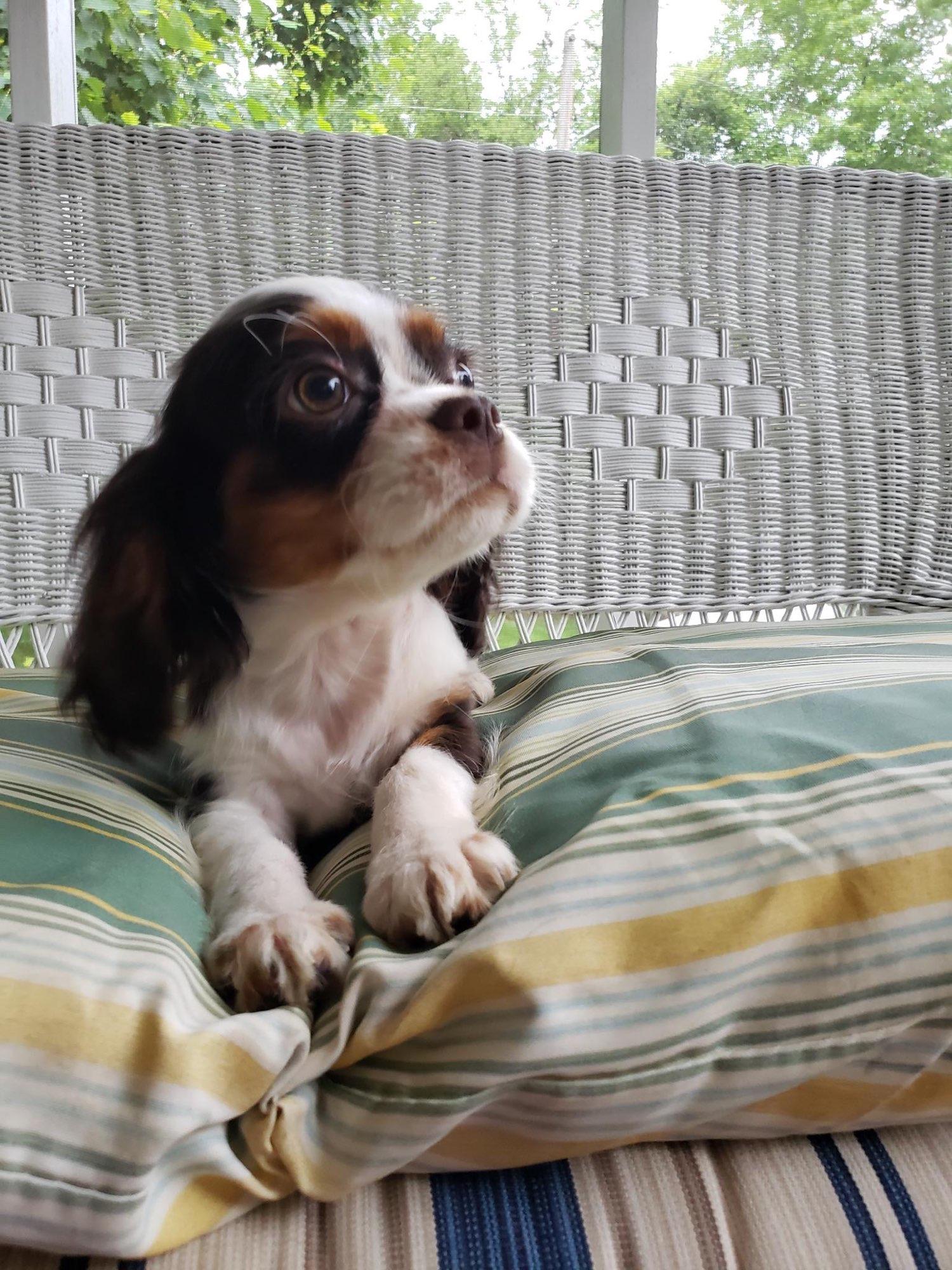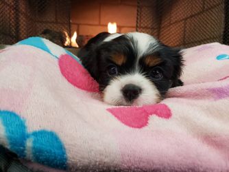 Our Cavalier King Charles Spaniel puppies include blenheim, tri-color, and chocolate. Colors will vary depending on the parent dogs.