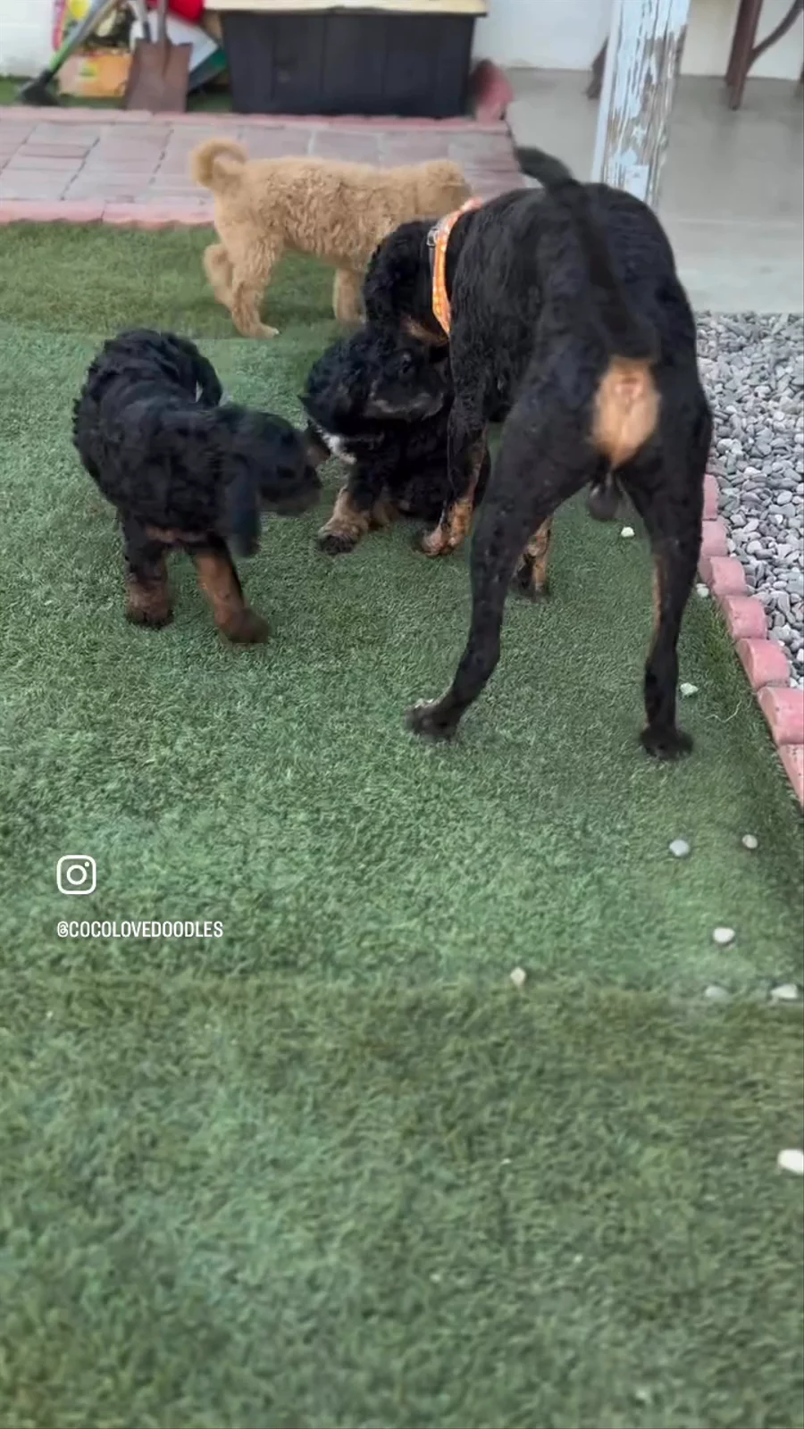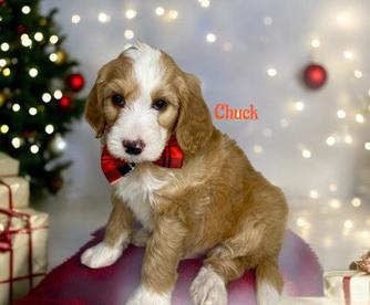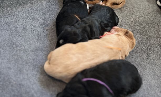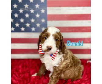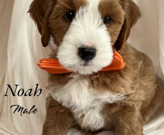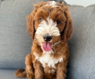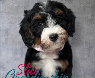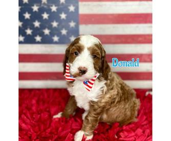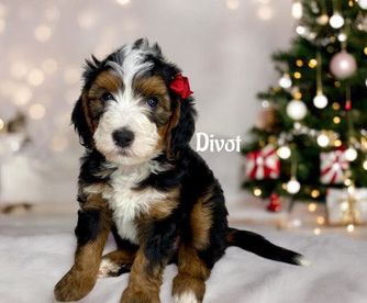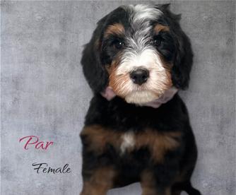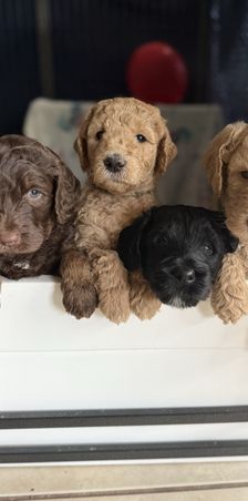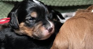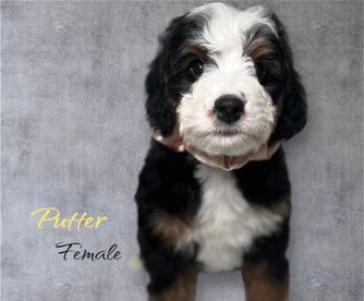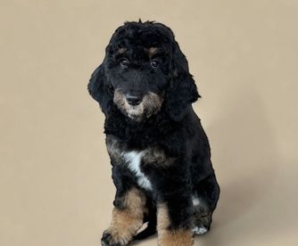 Goldendoodle puppies include cream, chocolate, black, and phantom. Bernedoodle puppies include brown and white and tri-color. Colors will vary depending on the parent dogs.