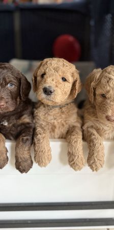 Goldendoodle puppies include miniature, medium, and standard sizes. Bernedoodle puppies include mini and medium sizes. Sizes will vary depending on the parent dogs.