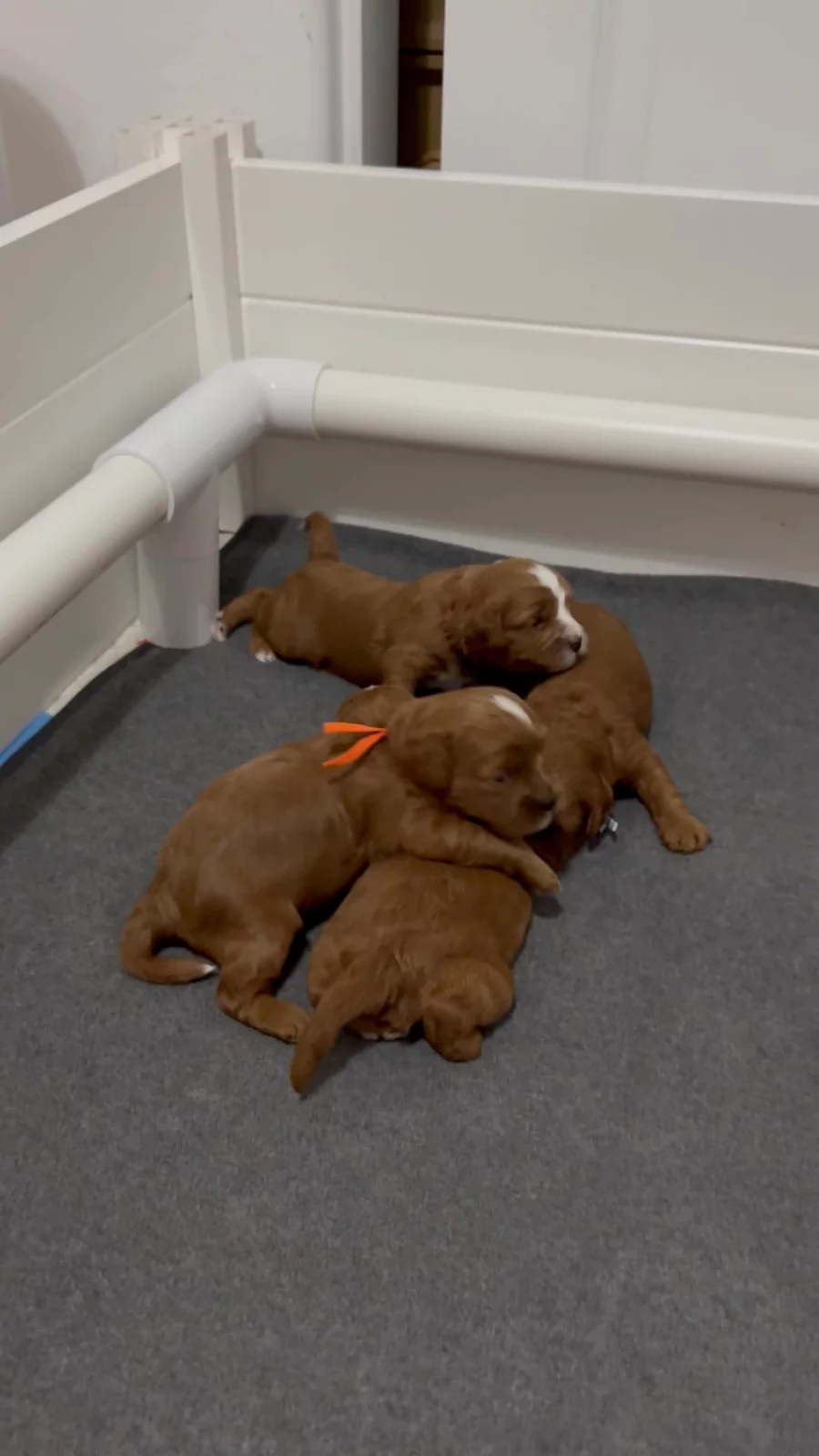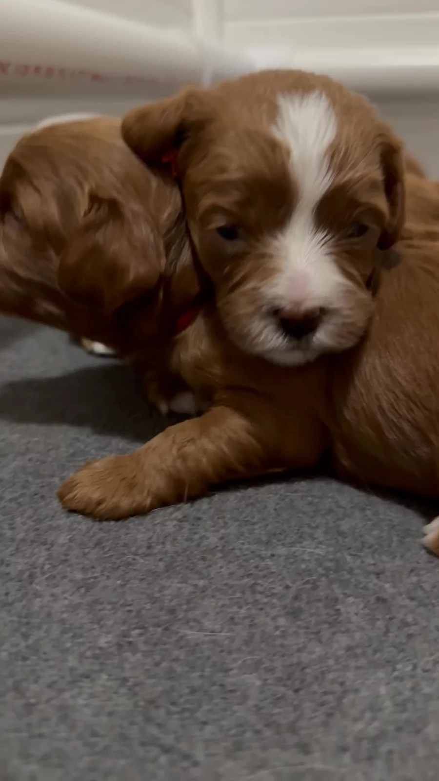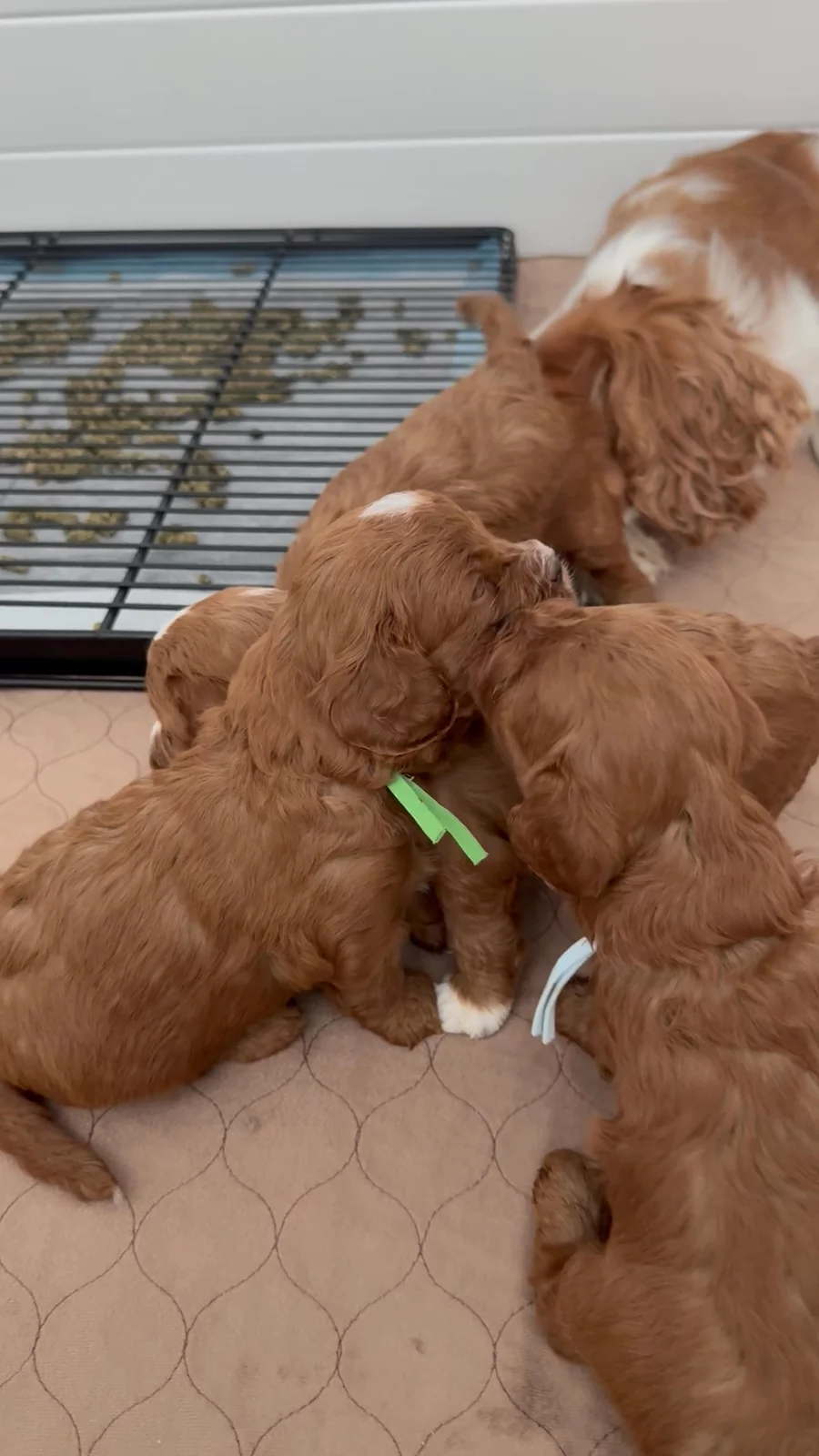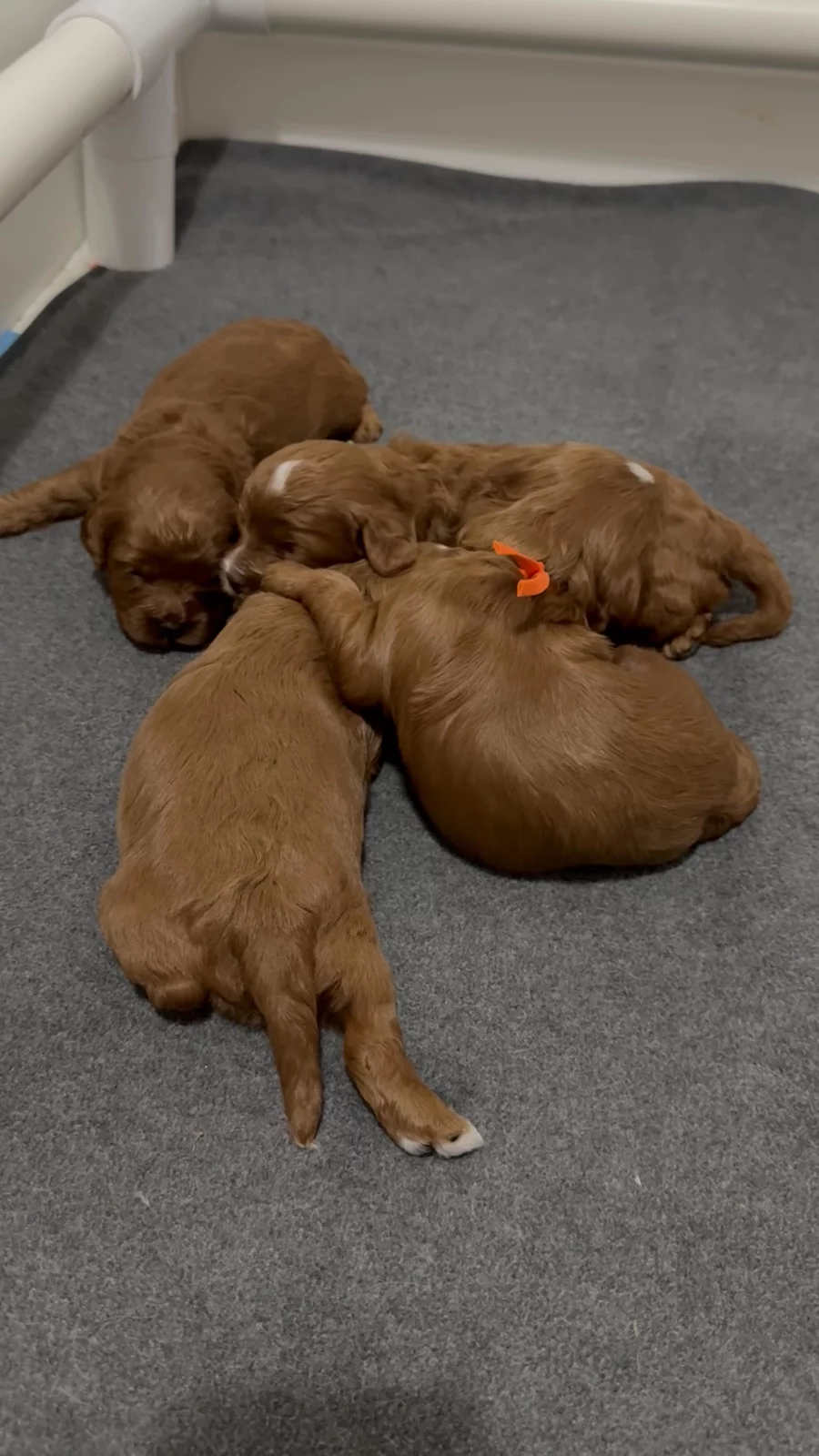 Our Bernedoodle puppies include red, tri-color, and merle. Cavapoo puppies are red. Colors will vary depending on the parent dogs.