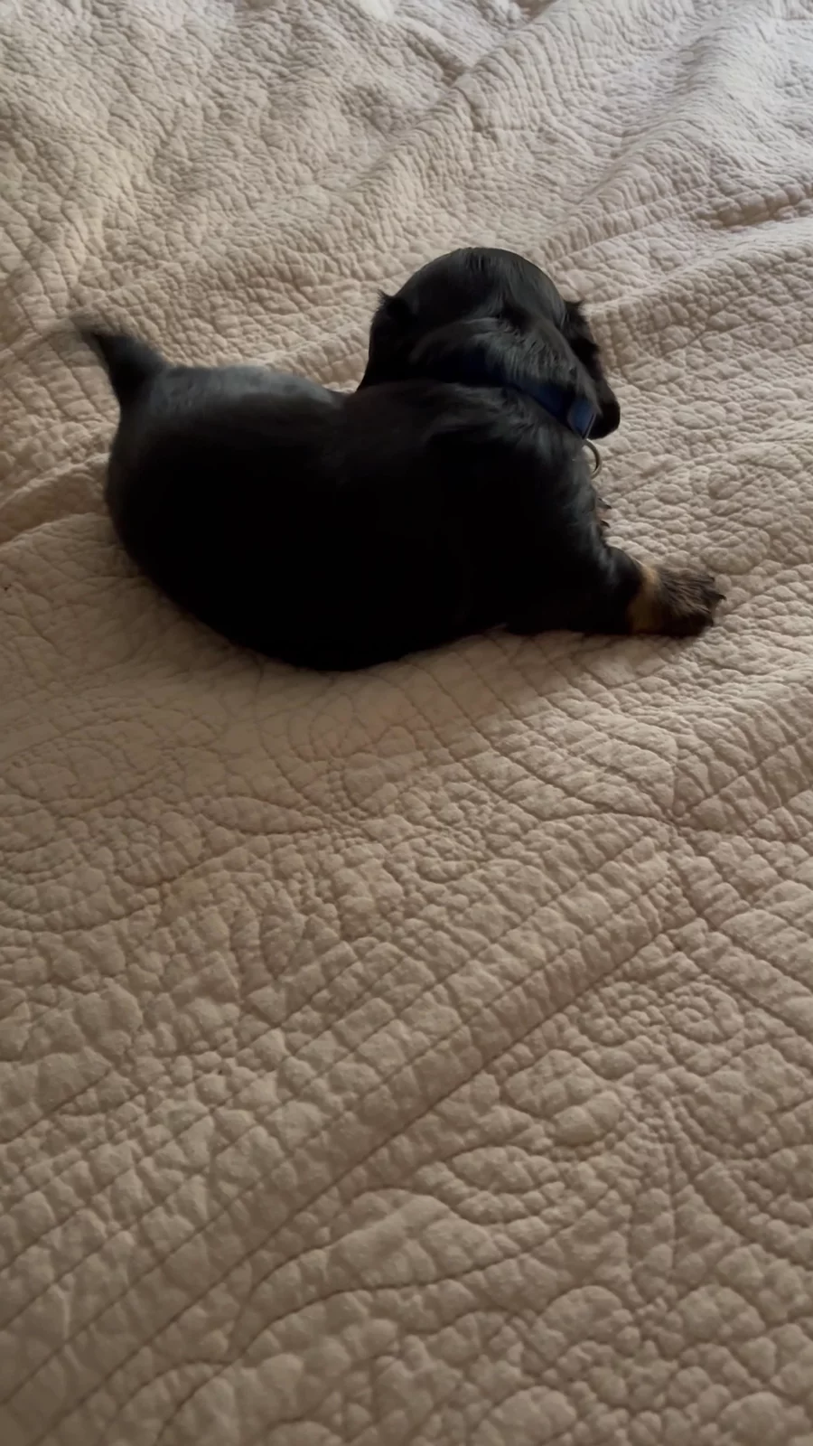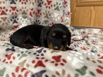 Romeo Theodore Montague Cromwell is stunning a beautiful black thick beautiful coat just a few areas of very dark brown. He has truly has the sweetest most loving personality and loves to cuddle and play. Romeo is AKC Registered ❤️ As with all of our Dachshunds we constantly work closely with our team of veterinarians and staff. At one year of age they have there their patella luxation formal clearances are done at 1 year of age. We always work closely with our veterinarians well before, during pregnancy and post. Romeo has had his AKC DNA 🧬 and health screening and proper yearly vet health examinations. Romeo was very carefully selected to be a wonderful sire to reproduce the exclusive AKC pedigree bloodline. As a AKC ring steward that prepares the show ring for AKC dachshund judges I get the opportunity to meet so many amazing talented AKC dachshund judges and people.