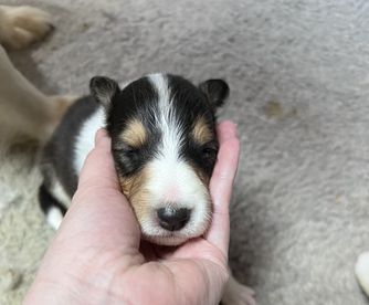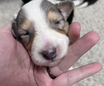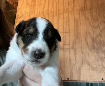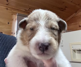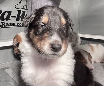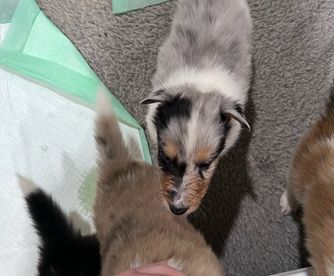 Our puppies include blue merle and white, sable merle and white, sable and white, sable merle, black white and tan, blue merle, and white. Colors will vary depending on the parent dogs.