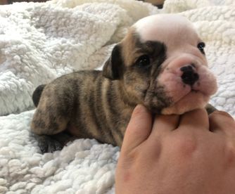 Sophie is a female Bulldog. Carefully selected as a great representative of her breed, Anna decided to make her part of their program. Anna has passed Good Dog’s screening process, which involved a review of their breeding practices, environment, and the mental and physical health of their dogs.