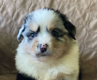 Our puppies include black & white, blue merle, and black tri. Colors will vary depending on the parent dogs.
