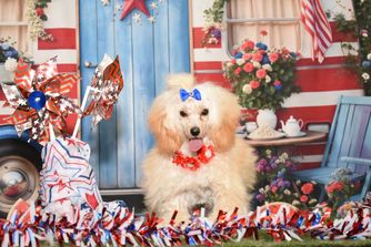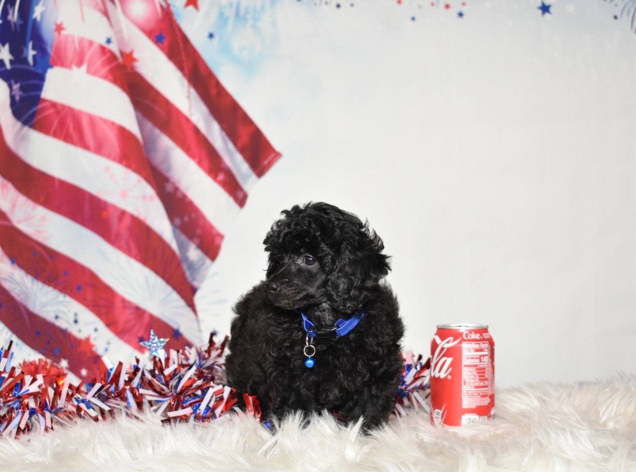 Dean is an AKC Toy poodle. He is the clown of our household and is constantly playing and being goofy. His favorite place to sleep is buried under a mountain of pillows on our bed.