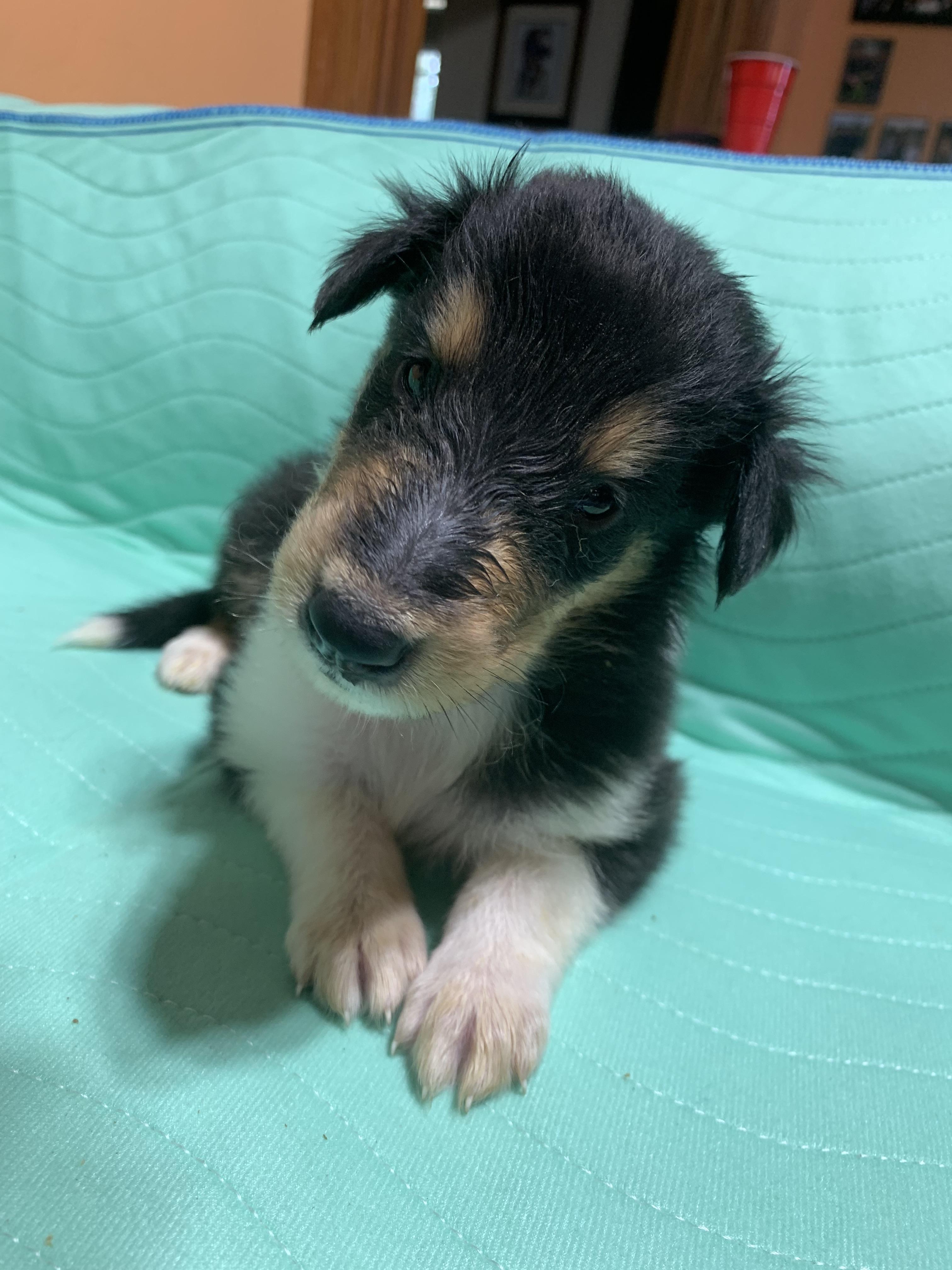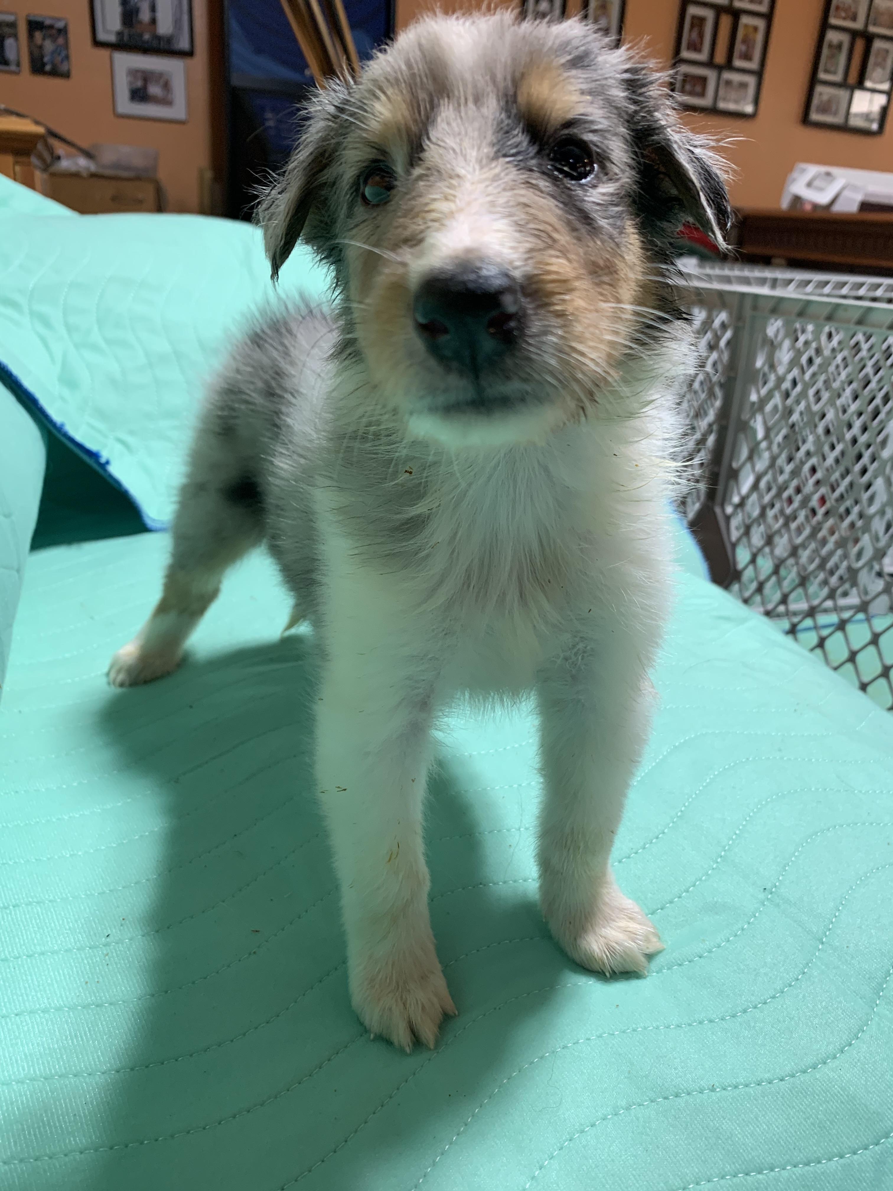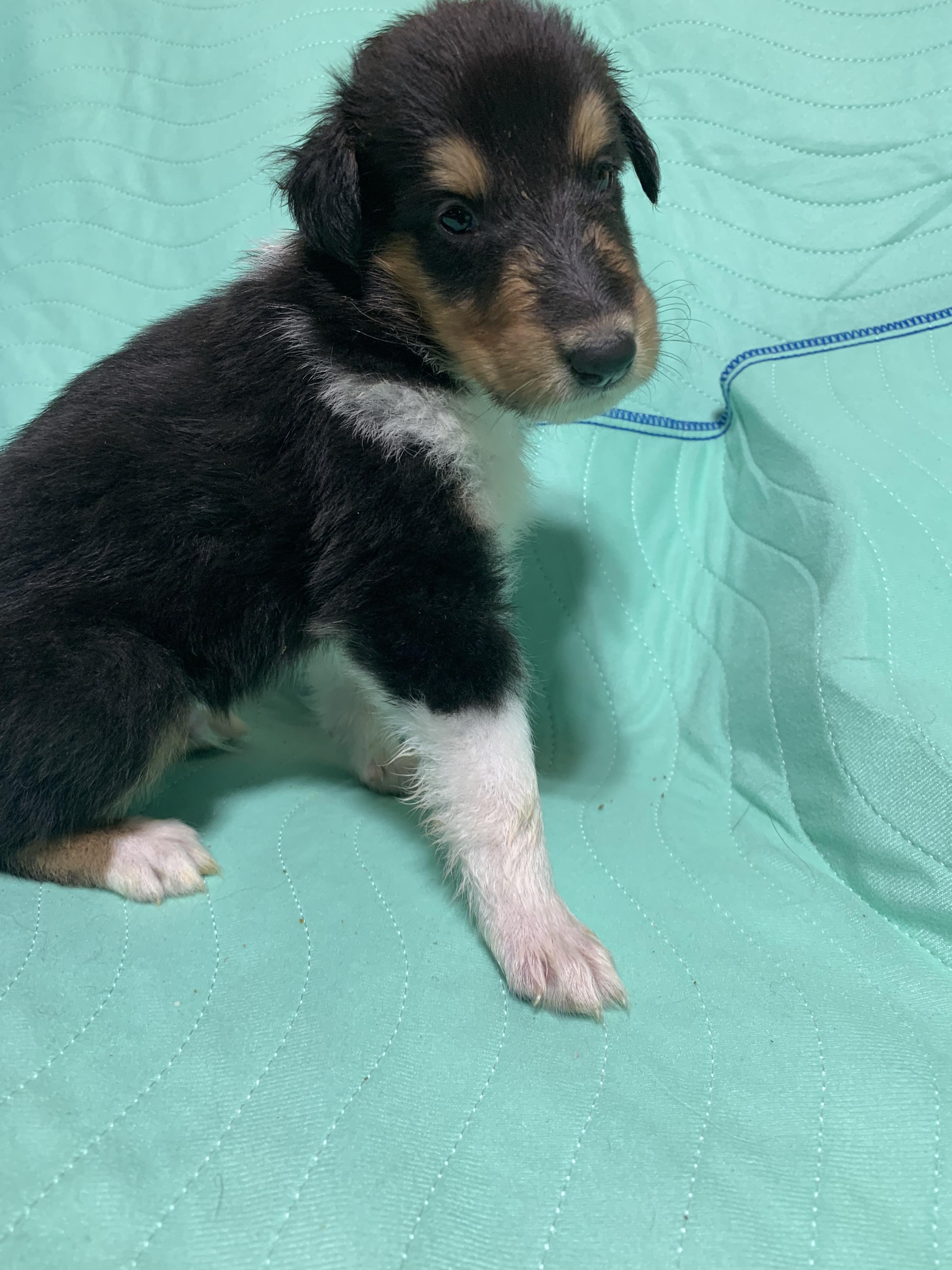 Our puppies include sable and white, black white and tan, and blue merle. Colors will vary depending on the parent dogs.