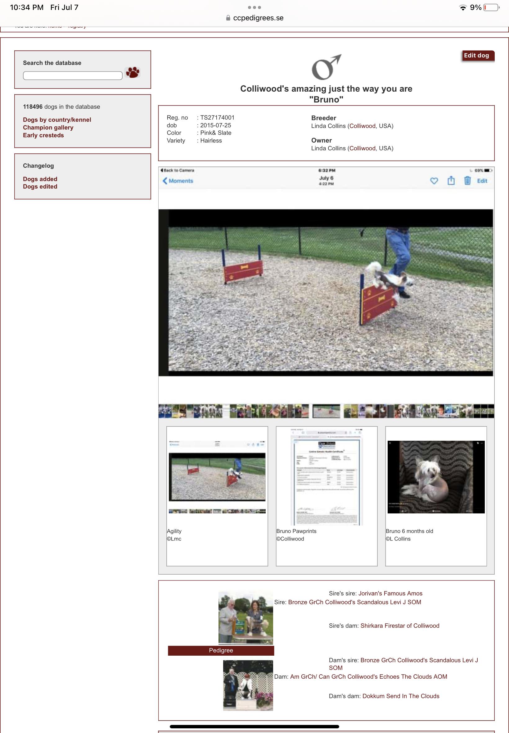 Bruno is a male Chinese Crested. Carefully selected as a great representative of his breed, Linda decided to make him part of their program. Linda has passed Good Dog’s screening process, which involved a review of their breeding practices, environment, and the mental and physical health of their dogs.