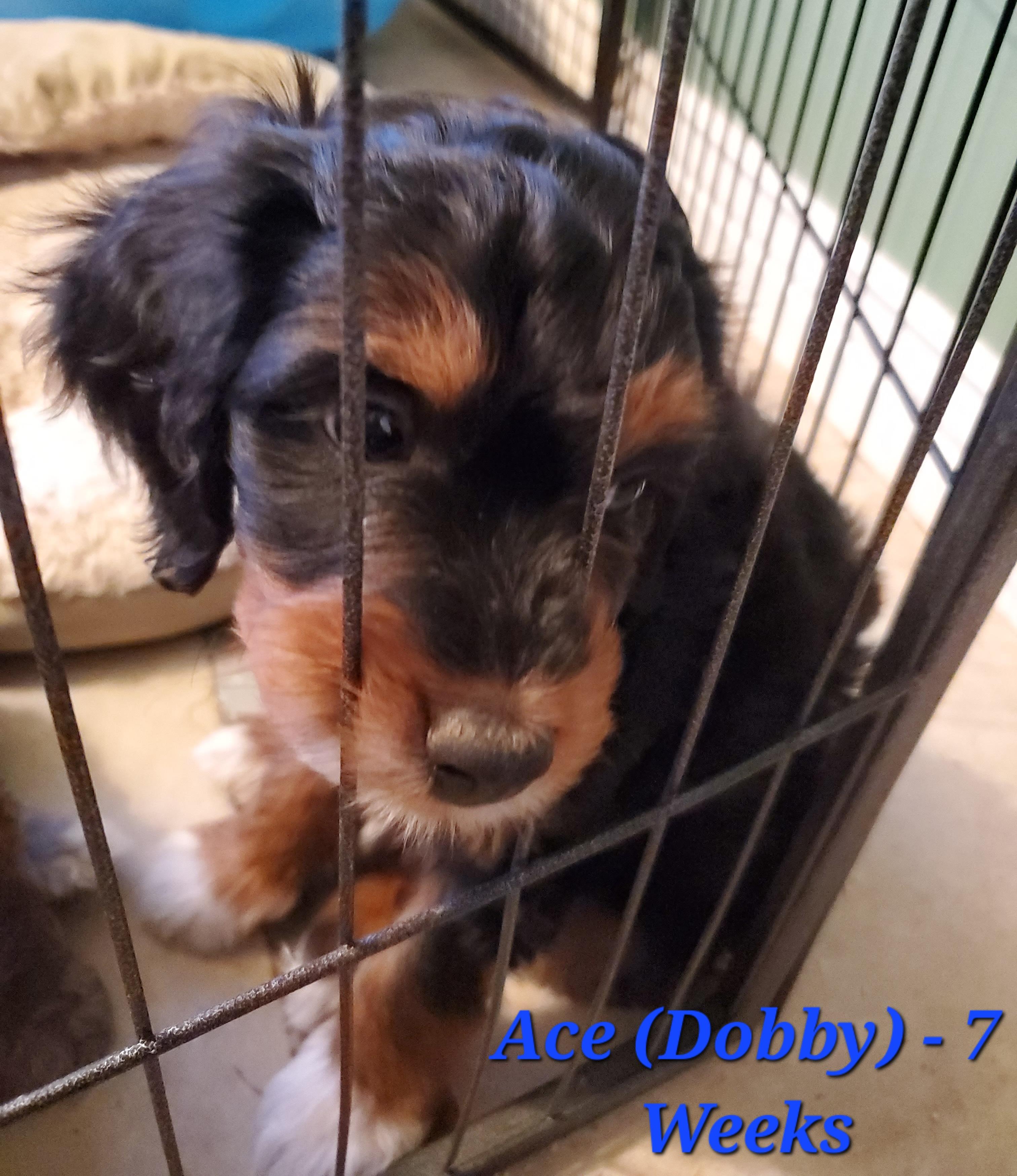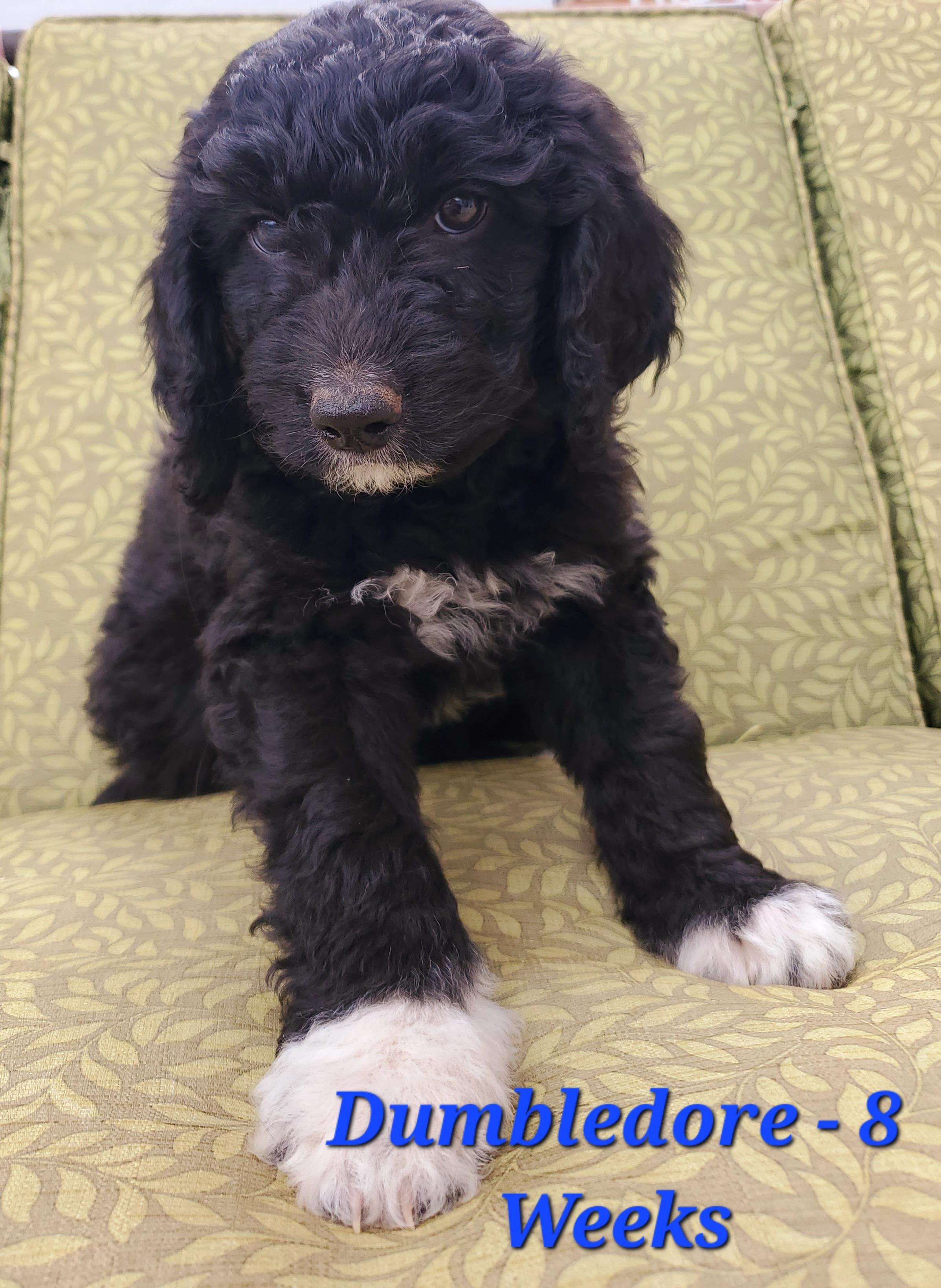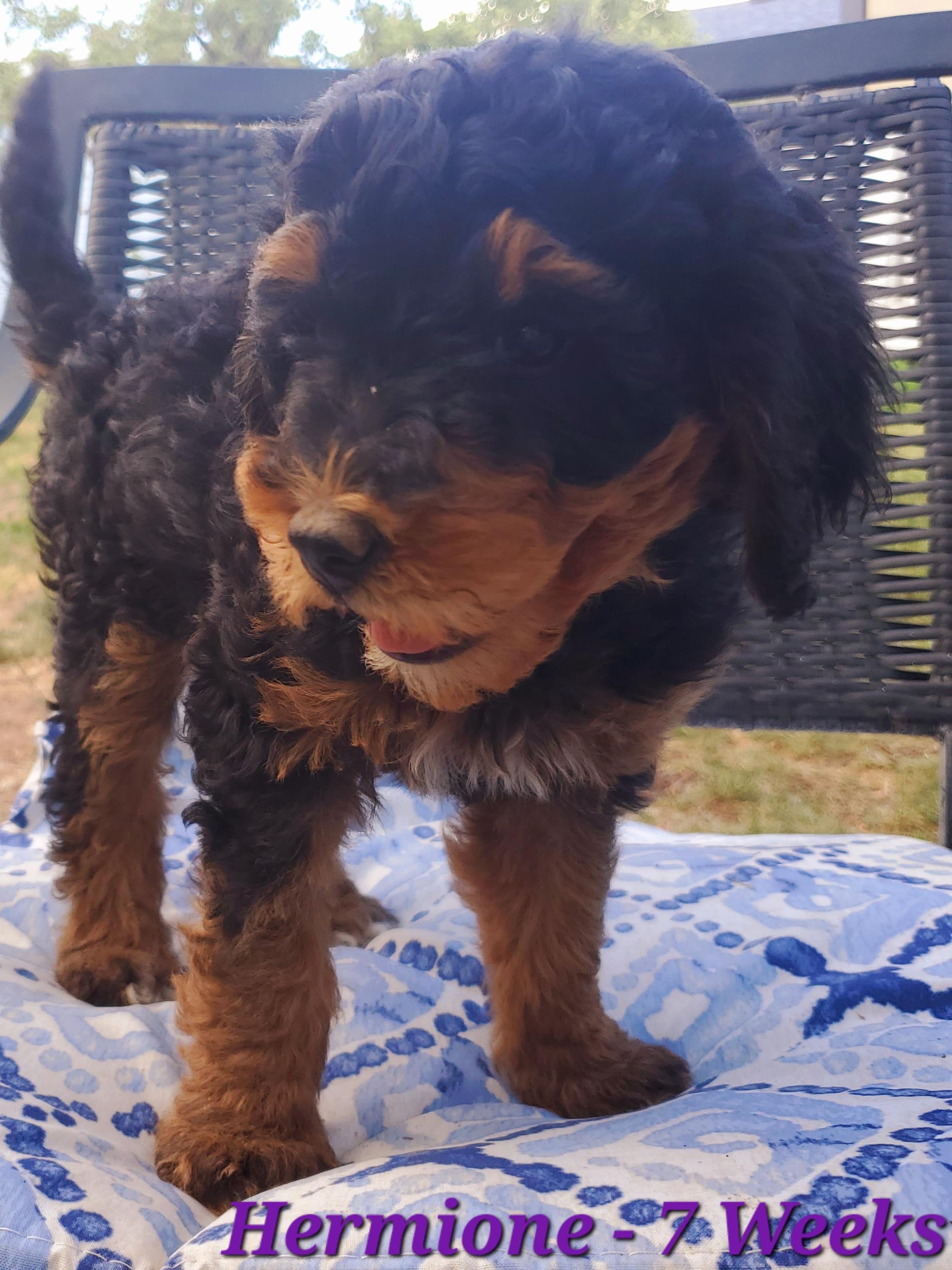 Our Poodle puppies include sable, apricot, black, brown, red, white, parti, and phantom. Aussiedoodle puppies include sable, apricot, blue merle, black phantom, black and white, and black tri-color. Bernedoodle puppies include black, black and white, tri-color, phantom, and merle. Colors will vary depending on the parent dogs.