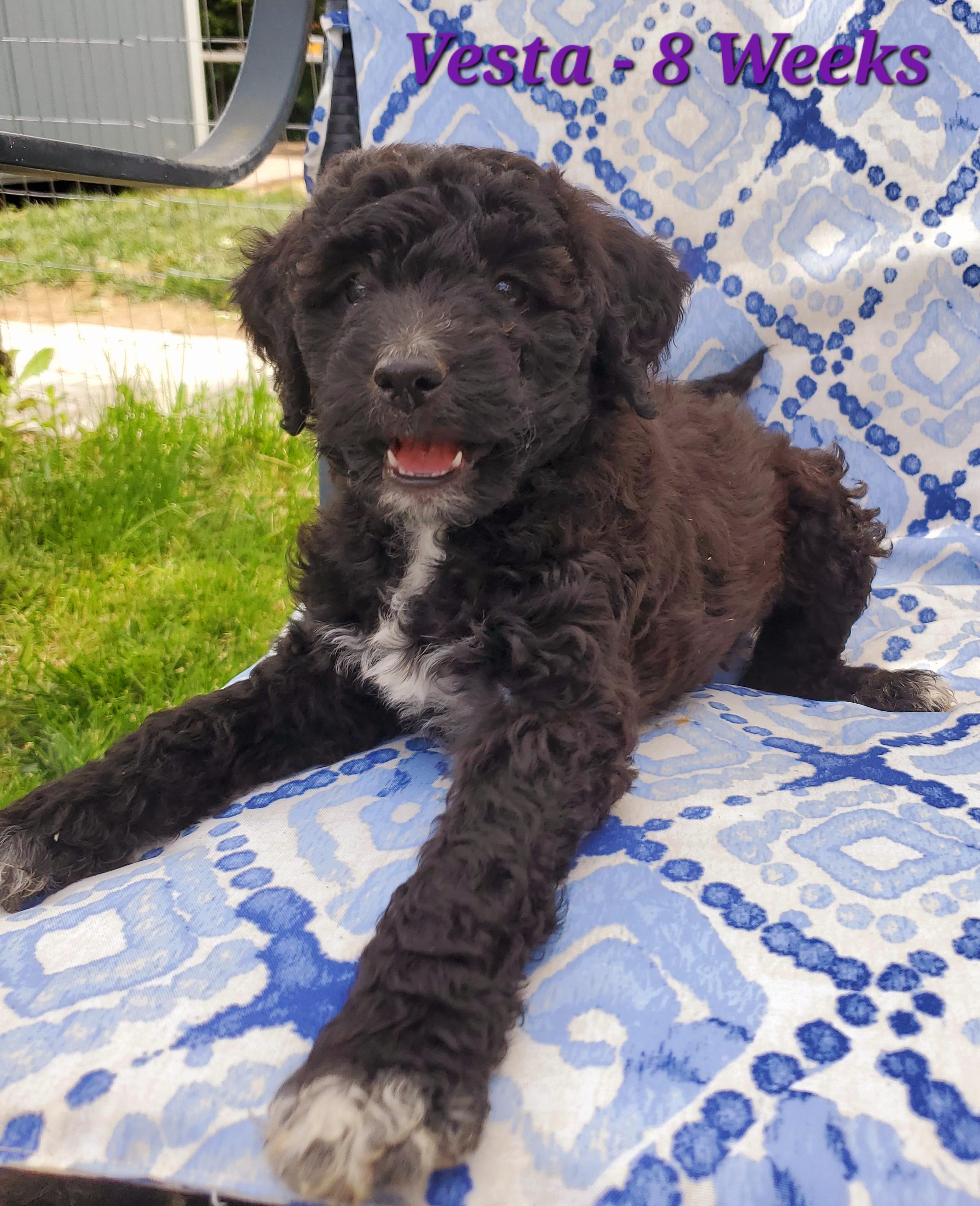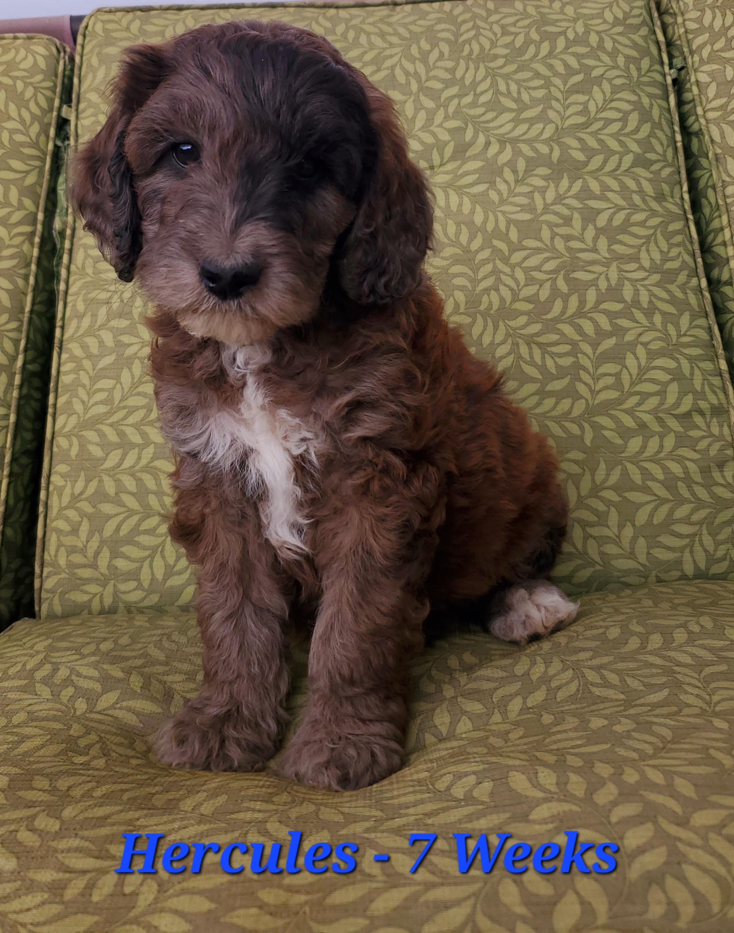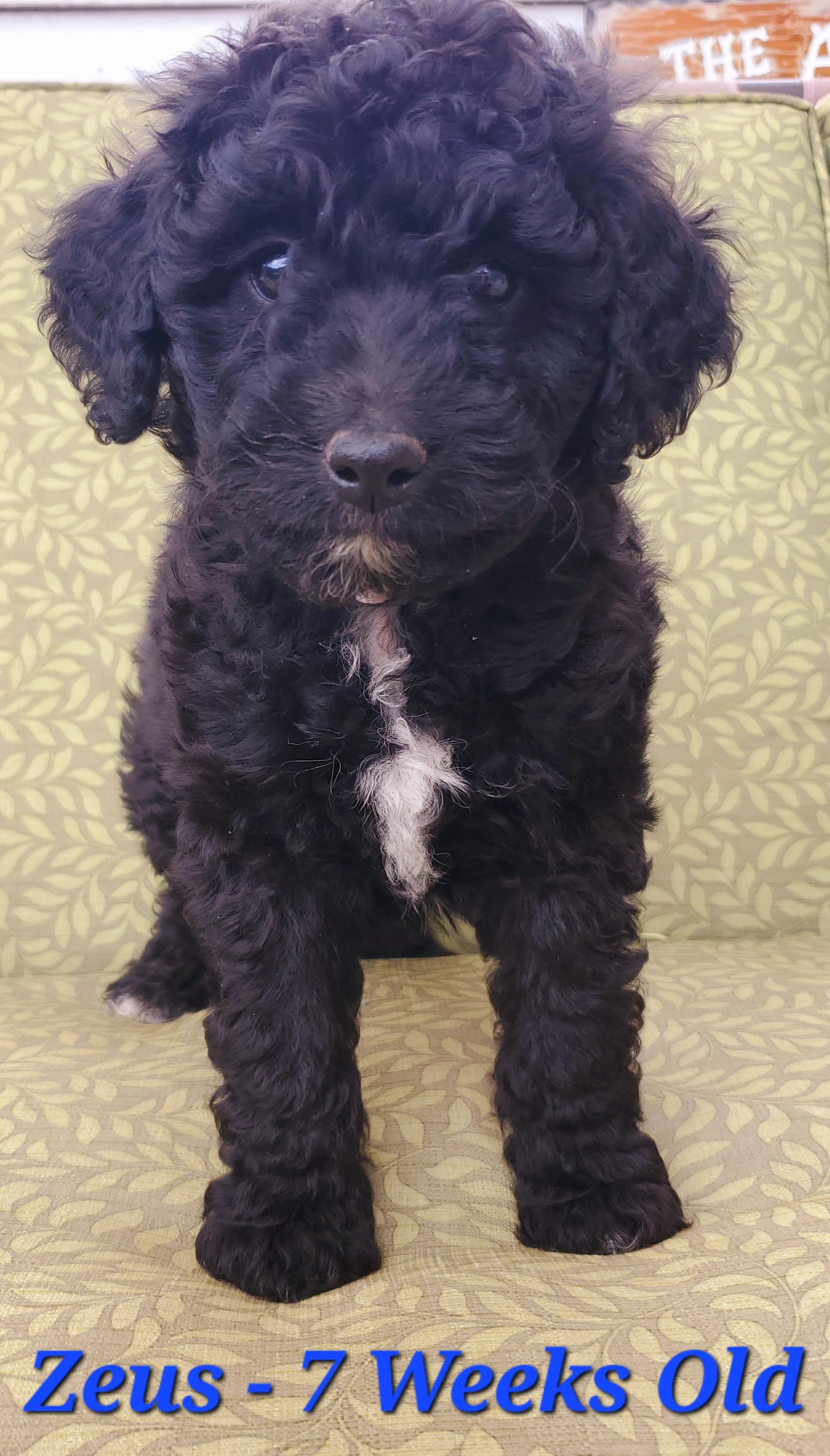Our Poodle puppies include sable, apricot, black, brown, red, white, parti, and phantom. Aussiedoodle puppies include sable, apricot, blue merle, black phantom, black and white, and black tri-color. Bernedoodle puppies include black, black and white, tri-color, phantom, and merle. Colors will vary depending on the parent dogs.