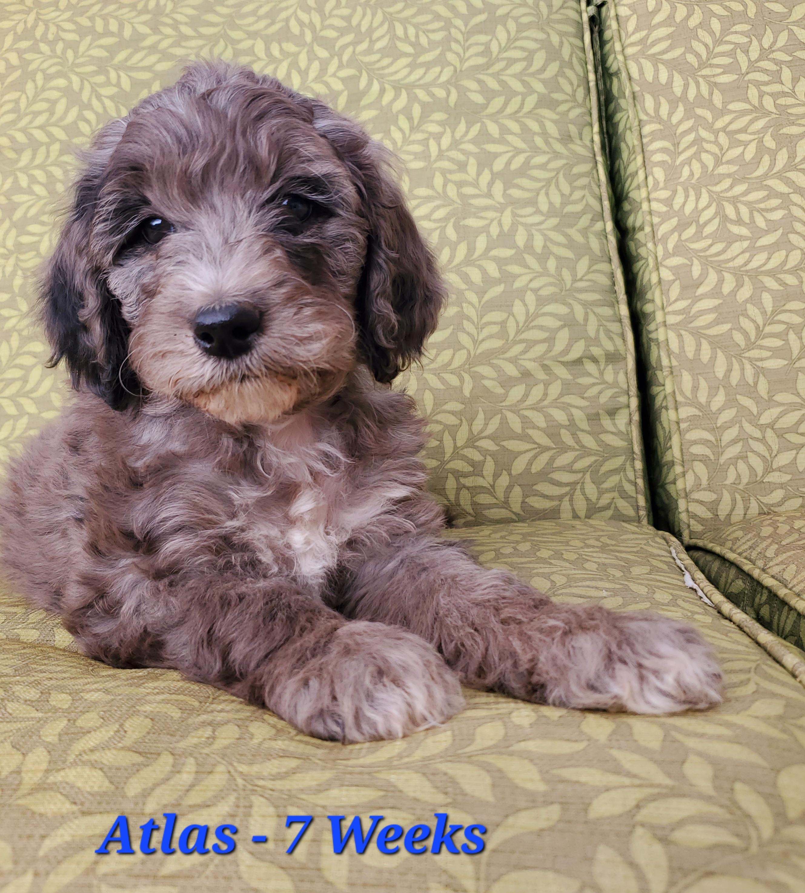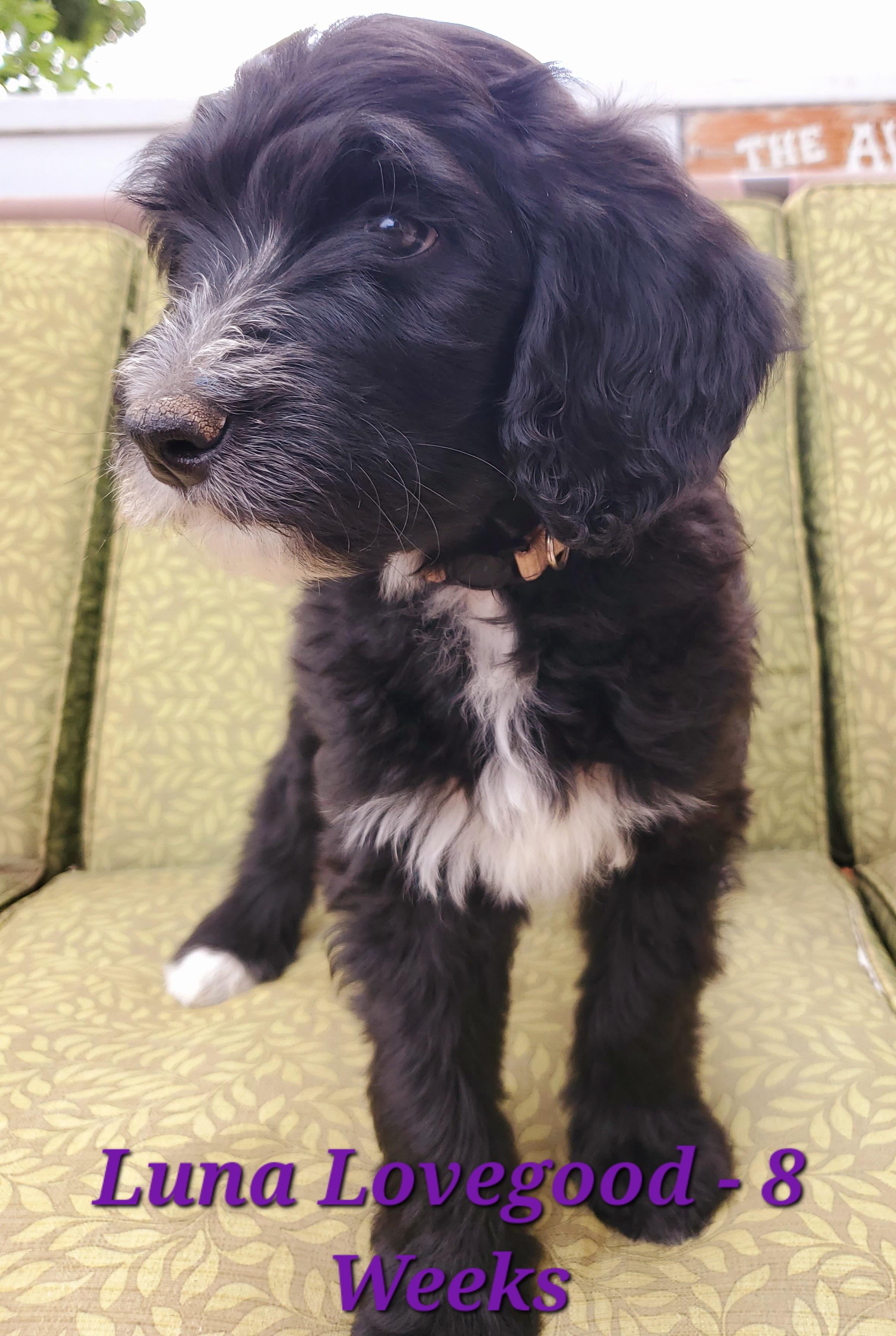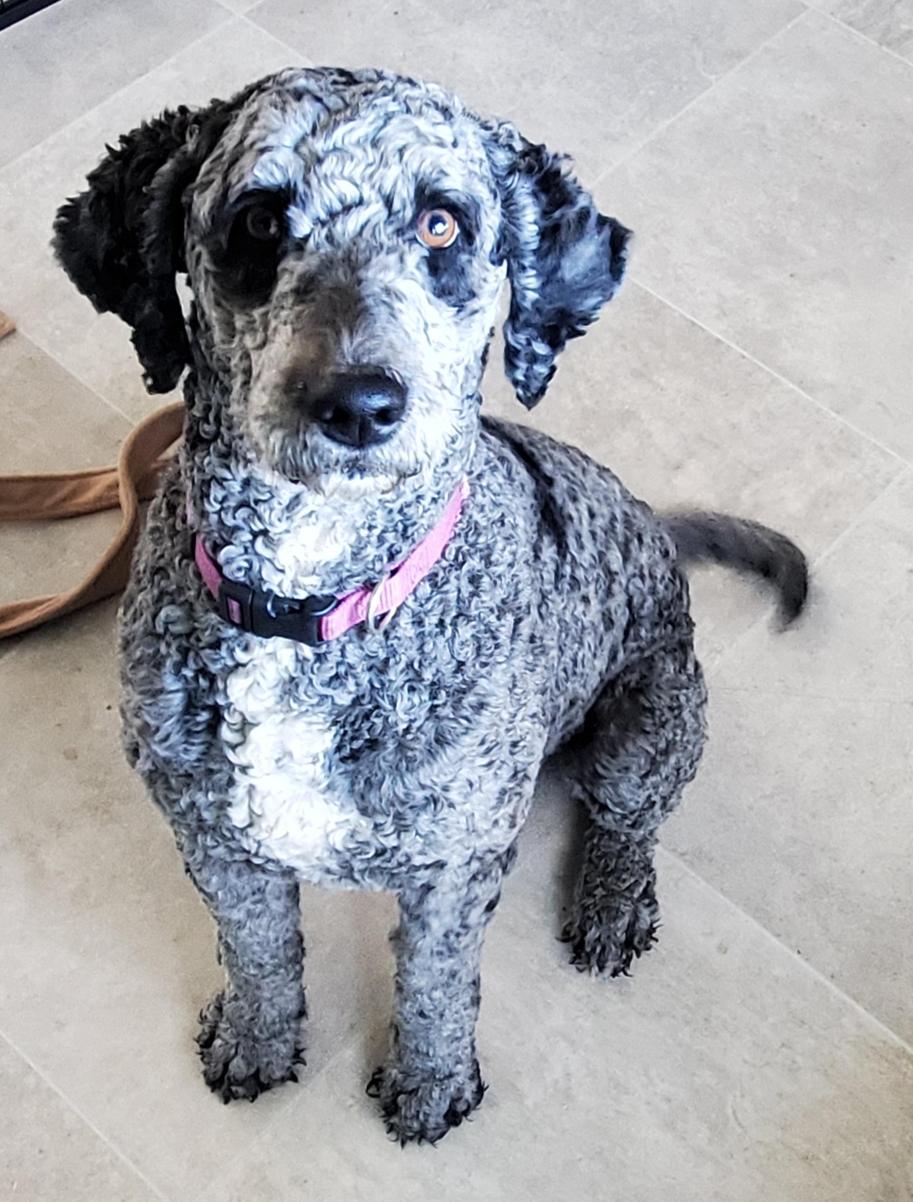 Luna is not only beautiful, but she has the sweetest personality and temperament! She is an F1b blue merle Aussiedoodle. She stands 21" tall and weighs in at 38 pounds. She has a special affinity for children and will play with mine just like she's one of the gang! If you want to go on a long hike, she's game, and will keep going for as long as you have the stamina. If you want to hang out in the house all day, she's game to just chill and sleep at your feet. She's simply the best!