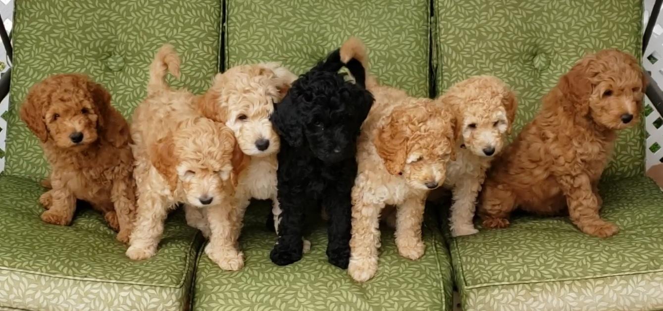 Our Poodle puppies are standard size. Aussiedoodle puppies include mini and standard sizes. Bernedoodle puppies are medium size. Sizes will vary depending on the parent dogs.