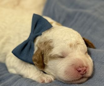 It all started with our first Goldendoodle. We decided to breed her one time for the "experience" with our kids. We loved it! I began researching breeding and slowly started adding dogs to our family. We use a great repro vet for testing, advice, TCI's, etc. I'm learning (trying to!) color/coat genetics. I'm continually increasing my knowledge of all things dogs/puppies to improve what we do.