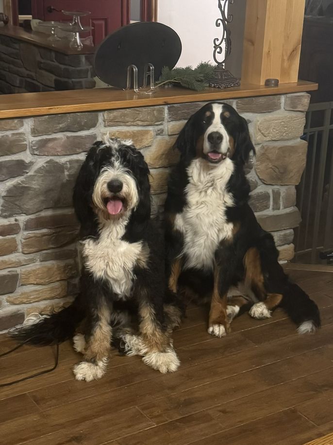 Our Bernedoodle puppies are standard size. Goldendoodle puppies include medium and standard sizes. Sizes will vary depending on the parent dogs.