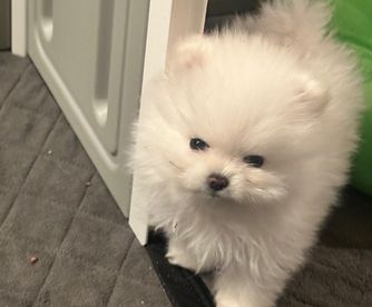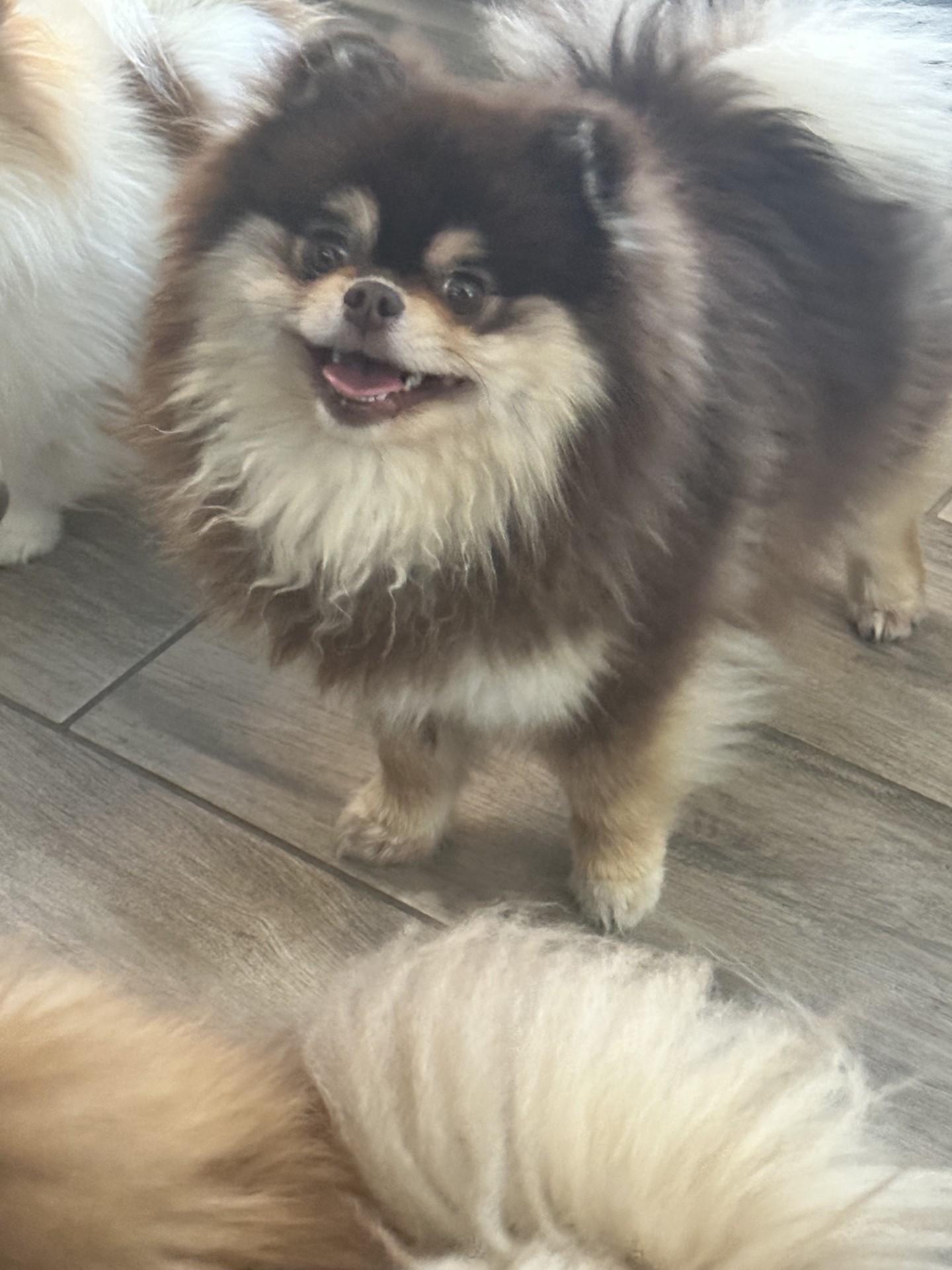 All of our Poms are raised in our home, among us day and night, and spoiled and treated as our “kids” until they are ready to go to their new home. They are outgoing, loving, and very playful. It would be our pleasure to introduce you to your next loving Pom puppy!