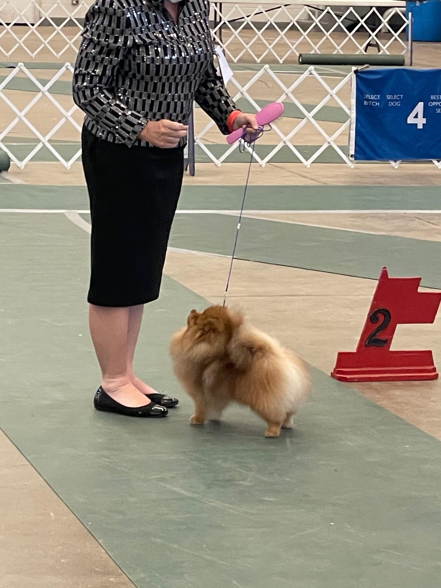 CH Rocelle of Salon de Pom is a female Pomeranian. Carefully selected as a great representative of her breed, Melissa decided to make her part of their program. Melissa has passed Good Dog’s screening process, which involved a review of their breeding practices, environment, and the mental and physical health of their dogs.