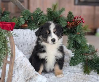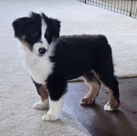Our puppies include red tri-color, black tri, red merle, and blue merle. Colors will vary depending on the parent dogs.
