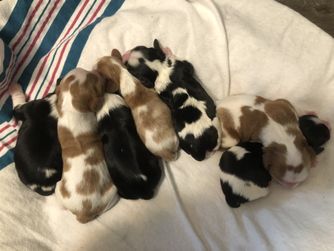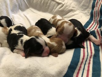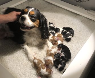 I'm Liz M., the breeder behind Comfort Cavs located in Devon, PA. Welcome to Comfort Cavs where we raise healthy, happy, beautiful puppies with the skills to be successful as therapy dogs, as emotional support animals, and as companions. Our puppies are raised in our home, with our busy family. About Cavoodles: If you’re looking for a dog that’s both smart and gorgeous, a Cavoodle (also called a Cavapoo), might just be the breed for you. This mix between a poodle (miniature or toy) and the Cavalier Kings Charles spaniel is one of the most popular dog breeds, for many reasons. The Cavoodle comes from two treasured breeds, so it makes sense that the combination would result in a truly delightful dog. Cavoodles are gentle and friendly, and their very social nature means they usually don’t know a stranger. Still, they tend to reserve their greatest affection (and they have a lot of it) for their families. They’re also extremely loyal and value human companionship—often even over that of other dogs. They think of themselves as one of your pack pretty quickly after joining your household, and they can sometimes get rather clingy. Don’t be surprised if you soon have a fluffy shadow following you everywhere soon after bringing home a Cavoodle. About Cavachons: The Cavachon is a mixed breed dog–a cross between the Cavalier King Charles Spaniel and Bichon Frise dog breeds. Compact, spunky, and full of fun, these pups inherited some of the best traits from both of their parents. Cavachons are loving and playful, and they make the perfect pet for families and city dwellers who live in small apartments. Let’s first have a look at the character and temperament of their ancestors in order to better understand what makes the Cavachon so popular. Cavachons are intelligent, playful, and overall merry. They get along perfectly with other canine companions, but also with children.