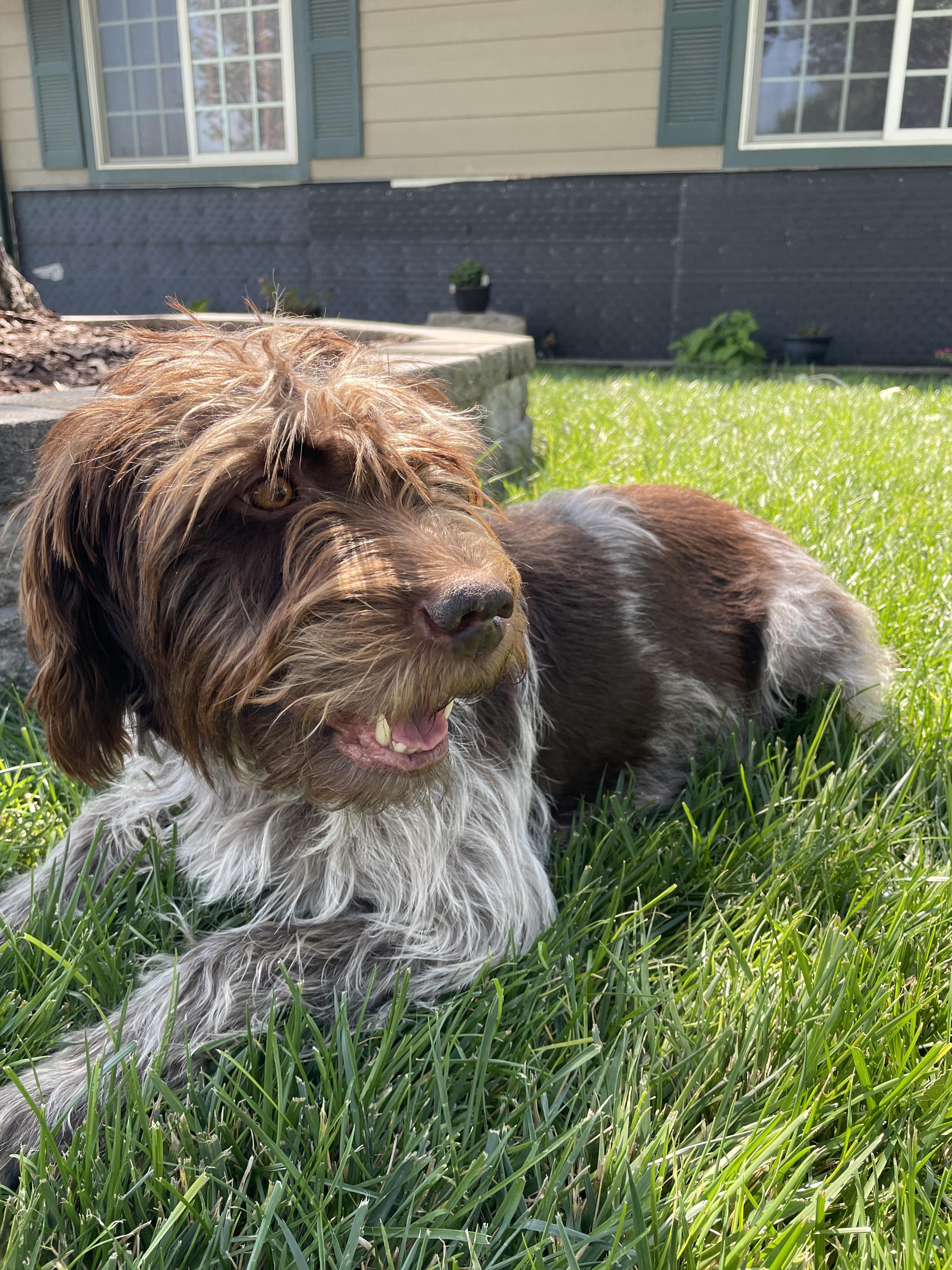 RiBI is a female Wirehaired Pointing Griffon. Carefully selected as a great representative of her breed, Zack decided to make her part of their program. Zack has passed Good Dog’s screening process, which involved a review of their breeding practices, environment, and the mental and physical health of their dogs.