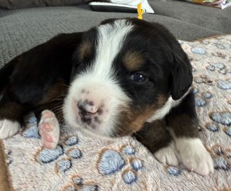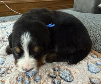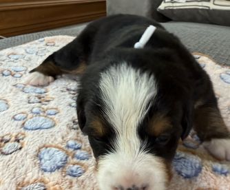 Bernese Mountain Dog puppies are black tan and white. Colors will vary depending on the parent dogs.