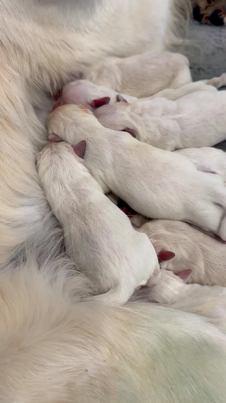 🐾 Welcome to the world! Born pink-nosed, eyes closed, and totally dependent on mama. Puppies arrive this way because pigment hasn’t fully developed yet — it’s amazing how much changes in just days! 💕