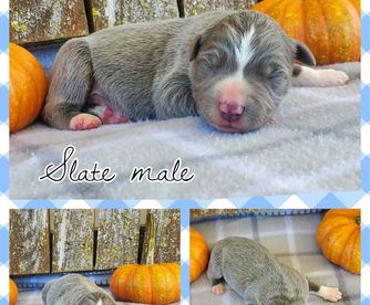 Border Collie puppies include slate merle, lilac merle, blue merle, red merle, black, blue, gold, lilac, red, sable merle, and slate. Colors will vary depending on the parent dogs.