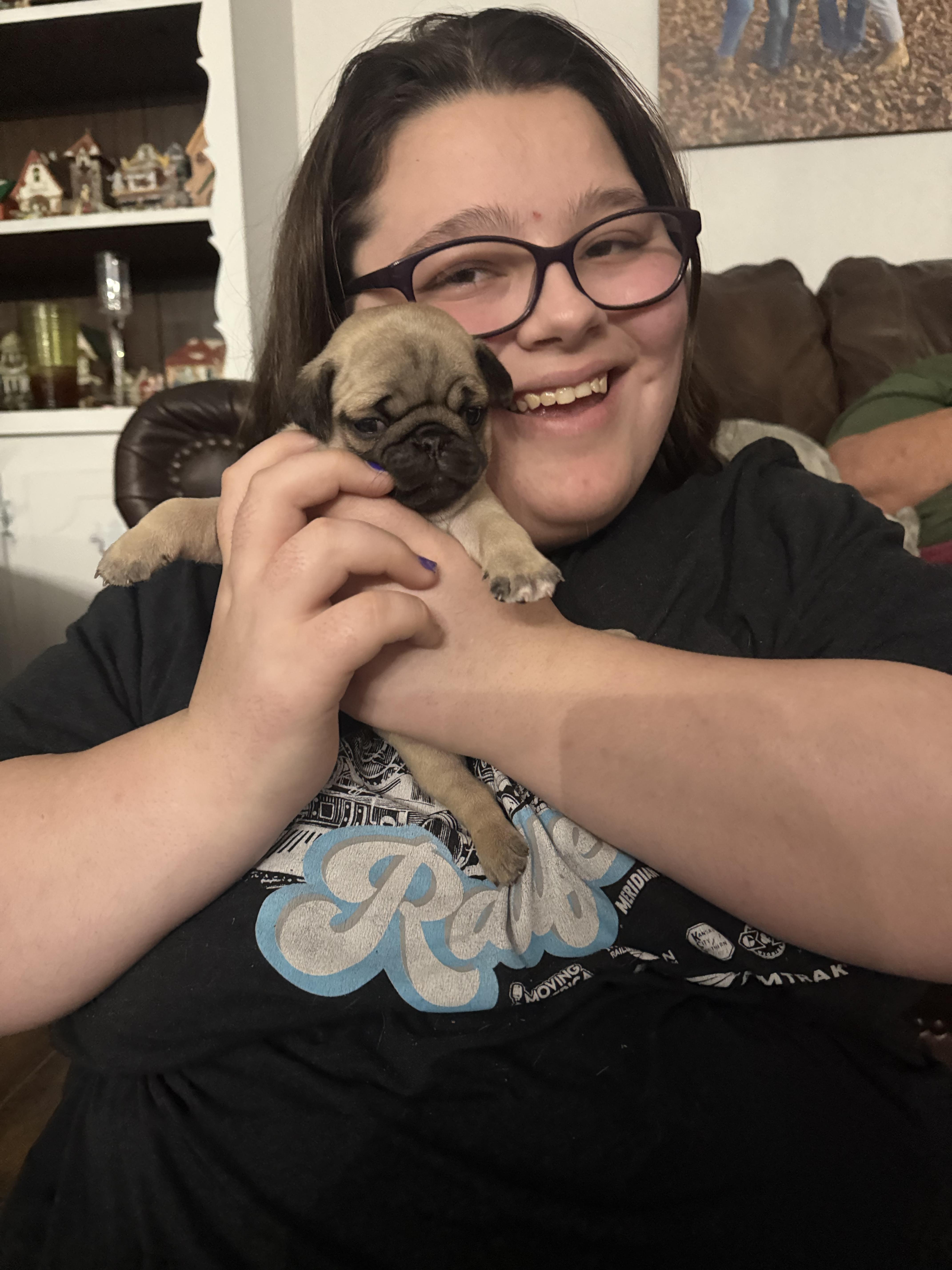 WillaBella is a male Pug. Carefully selected as a great representative of his breed, Deloris decided to make him part of their program. Deloris has passed Good Dog’s screening process, which involved a review of their breeding practices, environment, and the mental and physical health of their dogs.