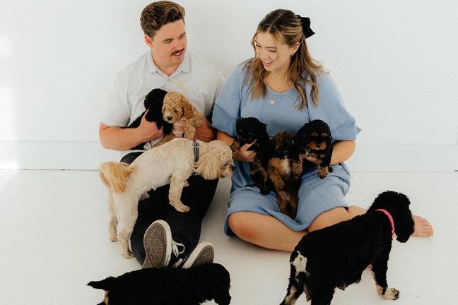 Puppy prices include a $500 non-refundable deposit and between $1,500 - $1,800 final payment, before taxes & fees.