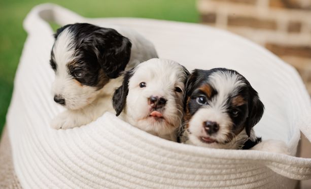 Puppy prices include a $200 non-refundable deposit and between $550 - $1,800 final payment, before taxes & fees.