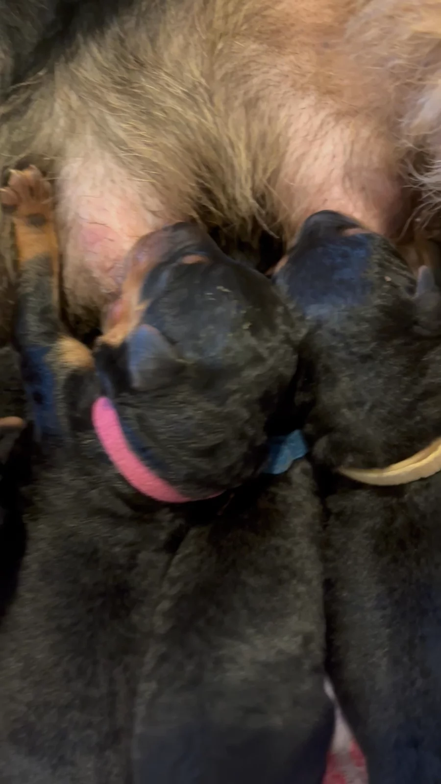 Our puppies are black and tan. Colors will vary depending on the parent dogs.