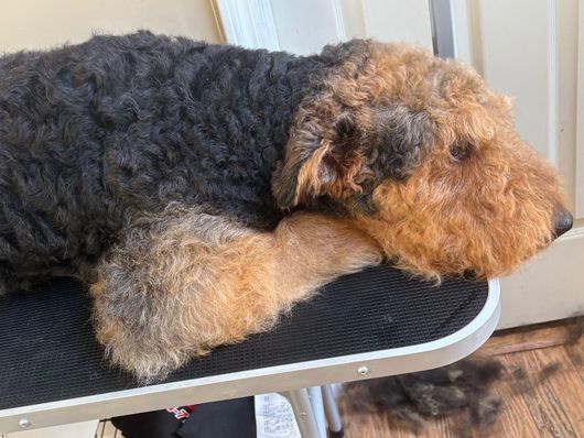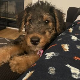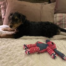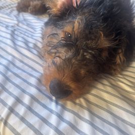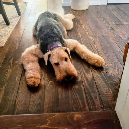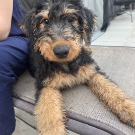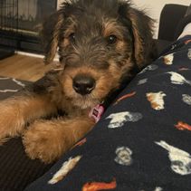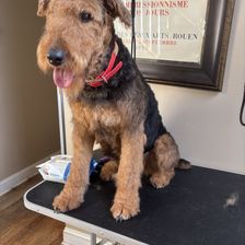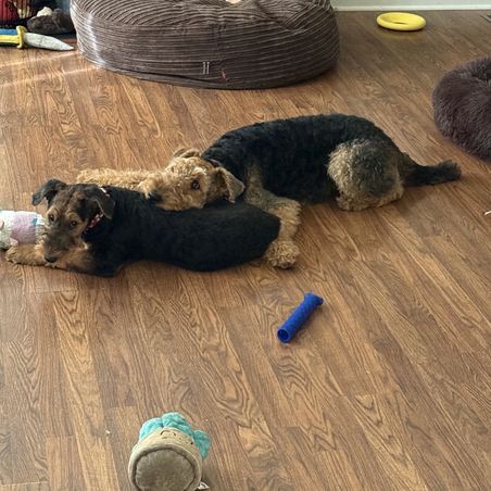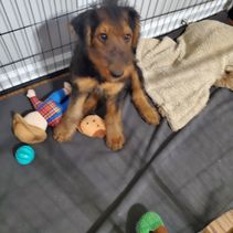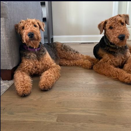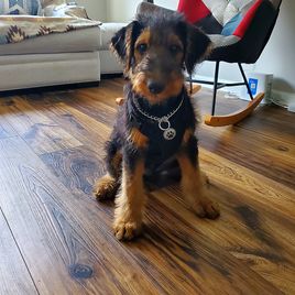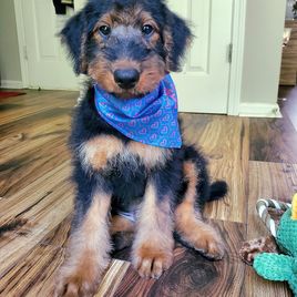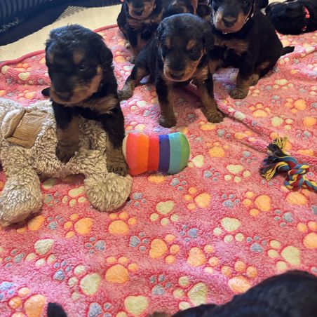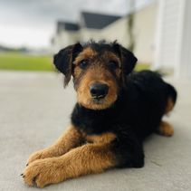 Our Airedales are our family members. They are raised inside our home. They sleep in our rooms. They go on vacations with us. We take them camping and hiking. Our pups are raised in with lots of love and socialization. They are handled every day. We keep a growth chart. We have children, they are great with kids. We litter train our pups we recommend crate training when they go to their new homes. Keeping the pups on a schedule for optimal health and training. Overall we just want happy healthy pups. We want to bring your family as much joy as we have had over the years with this wonderful breed.