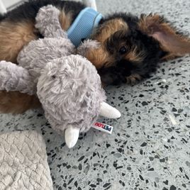 Alisha was great to work with. She sent us photos regularly and answered the questions we asked. They met us part of the way down so we didn’t have to drive as far as well. Our baby Ember is such a sweet and playful dog and she quickly became a big part of our family.