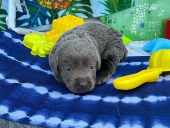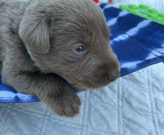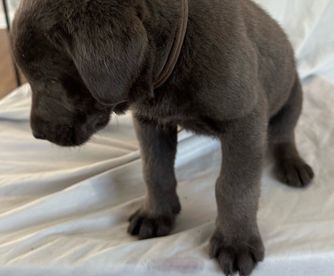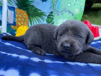 Our Labrador Retriever puppies include black, chocolate, and yellow. Dilute Retriever puppies include silver, charcoal, and champagne. Colors will vary depending on the parent dogs.