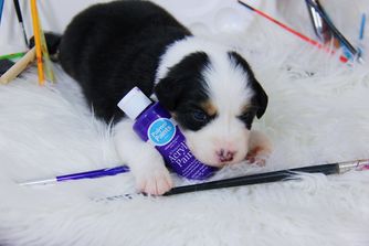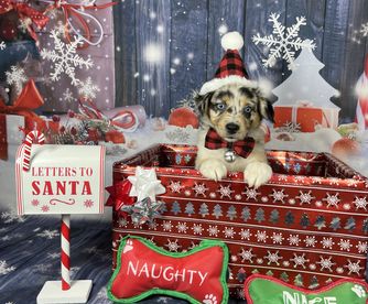 Our puppies include black, red merle, blue merle, and red. Colors will vary depending on the parent dogs.