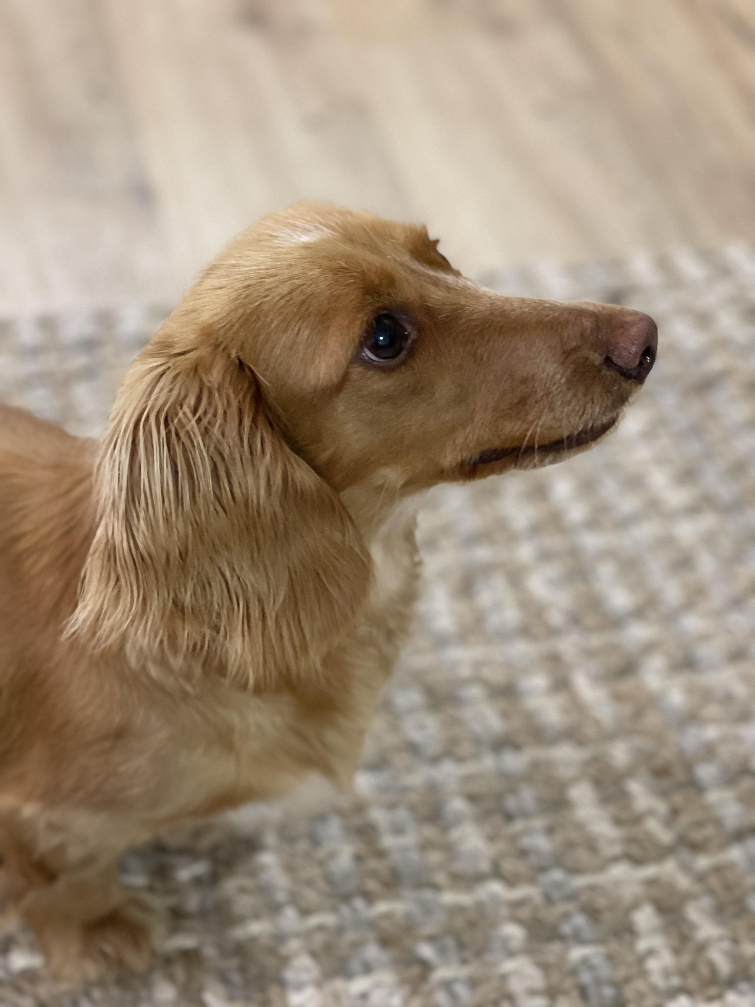 Goldie is a female Dachshund. Carefully selected as a great representative of her breed, Alisha decided to make her part of their program. Alisha has passed Good Dog’s screening process, which involved a review of their breeding practices, environment, and the mental and physical health of their dogs.