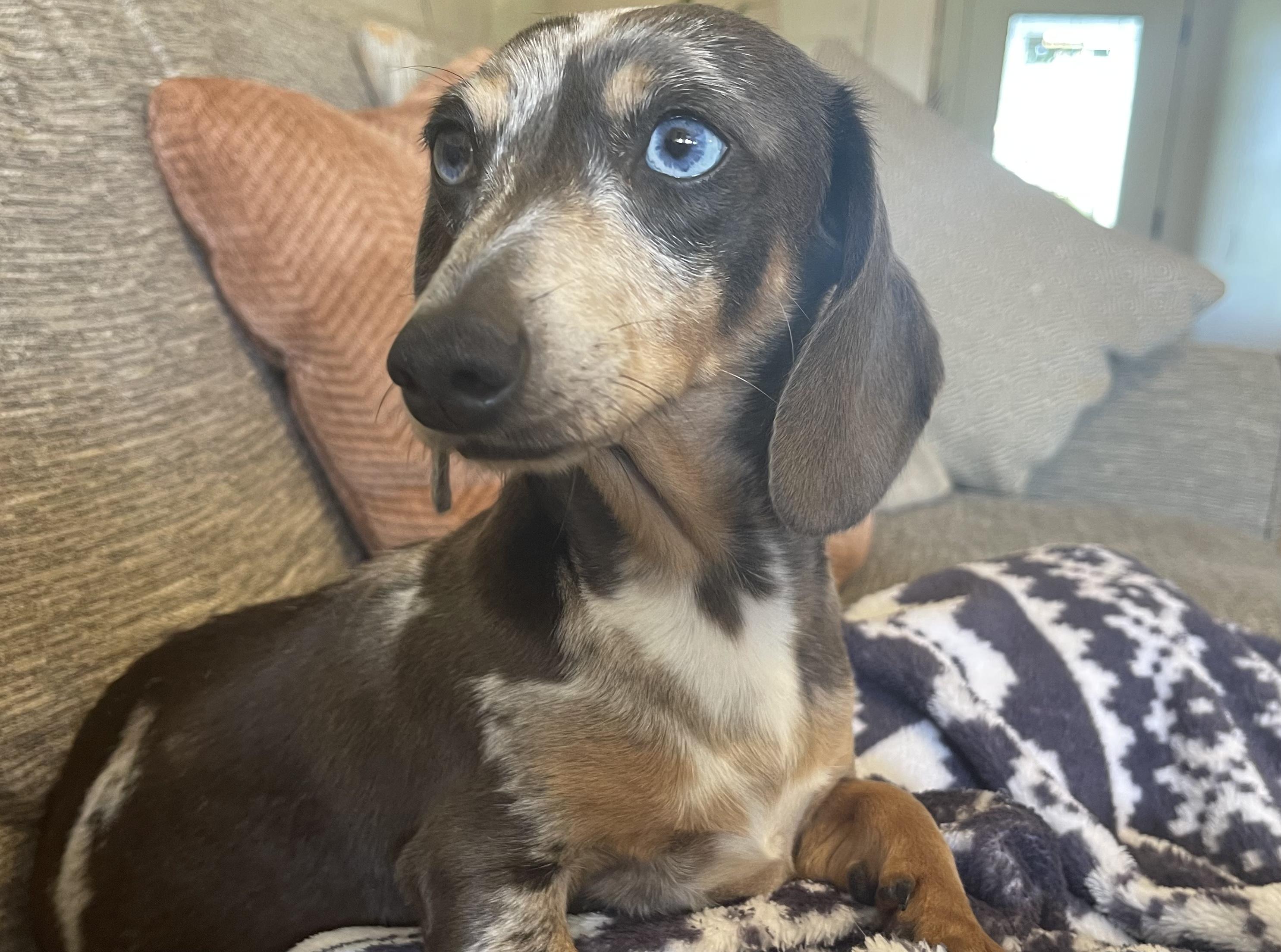 Dolly is the sweetest! Her personality is so calm and loving. She is smart and wants all your attention. Her coat is a beautiful chocolate and tan patchwork dapple LH.