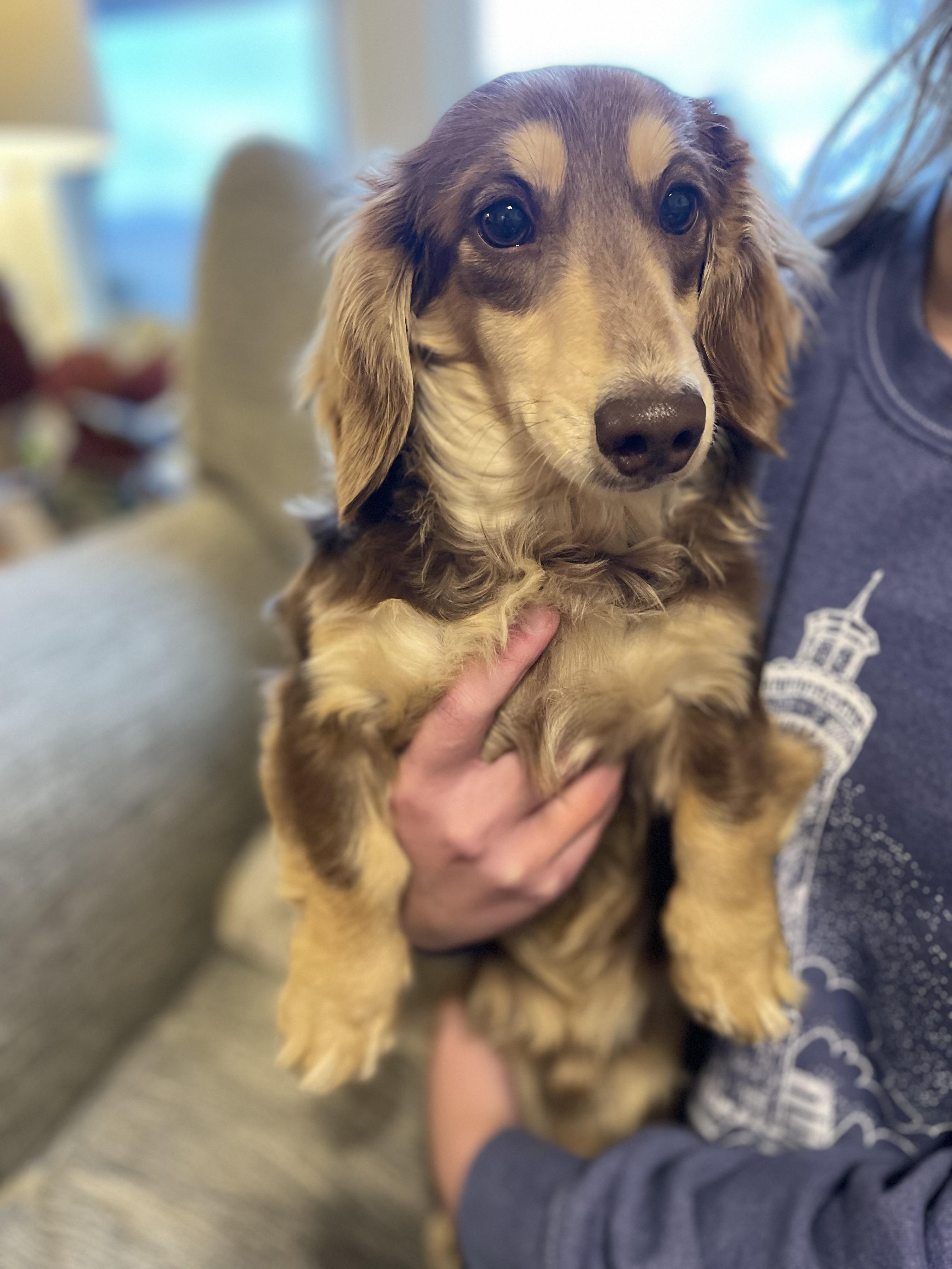 My sister in-law and her children started breeding mini AKC dachshunds about 10 years ago. We fell in love with their dogs and bought 2 fur babies from them, our Goldie and Baby Betty. She encouraged us to start breeding and we found the perfect little guy to become a part of the Cooper family, Mr. Bill Dangles! We have fallen in love with the dachshund breed and love our fur babies!