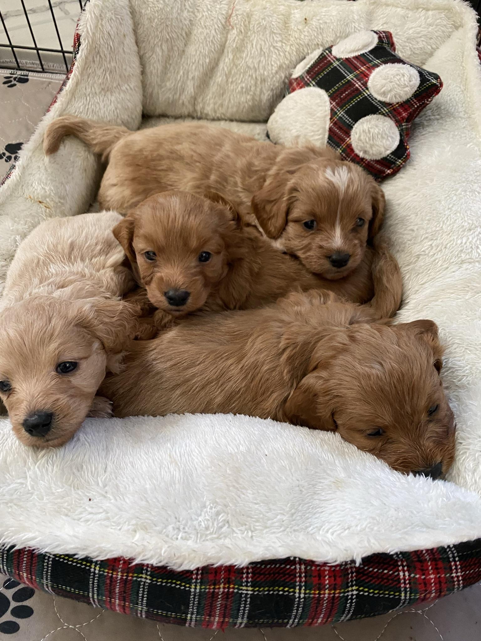 Our Poodle puppies are toy size. Cavapoo puppies are toy size. Sizes will vary depending on the parent dogs.