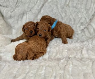 Our Poodle puppies include apricot and red. Colors will vary depending on the parent dogs.
